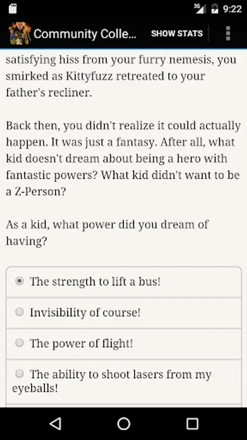 "Community College Hero: Trial by Fire" is a thrilling 168,000-word interactive novel by Eric Moser, where your choices control the story. It's entirely text-based--without graphics or sound effects--and fueled by the vast, unstoppable power of your imagination.