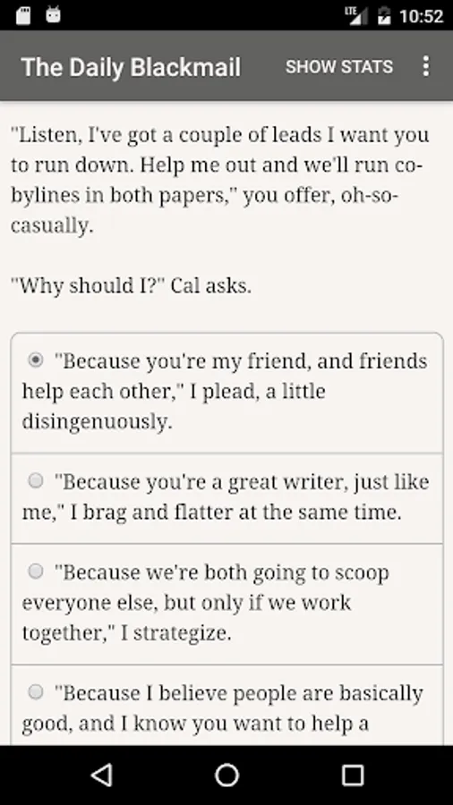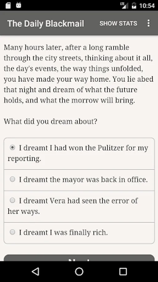 "The Daily Blackmail" is a 33,000 word interactive fantasy novella by Mary Duffy, where your choices control the story. It's entirely text-based—without graphics or sound effects—and fueled by the vast, unstoppable power of your imagination.