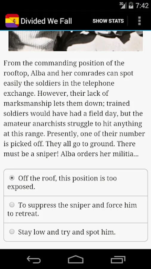 In this interactive novel, you will follow and shape the lives of four young Spaniards on both sides of the divide. There's a left-leaning police officer, a good Catholic girl who becomes a nurse, a patriotic fighter pilot and an anarchist militiawoman who takes up arms in the name of revolution.