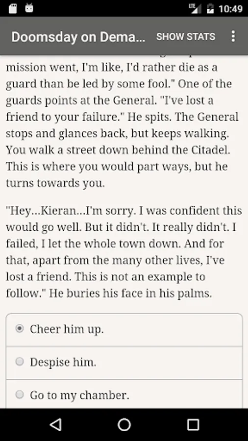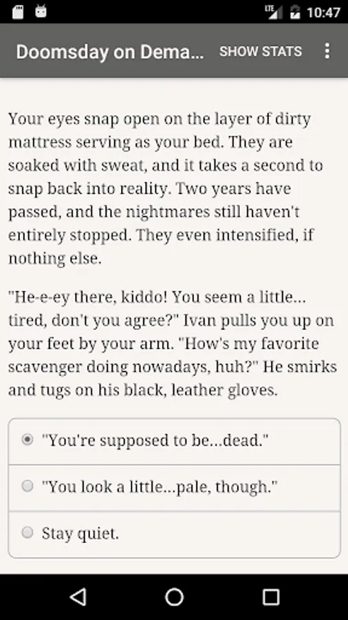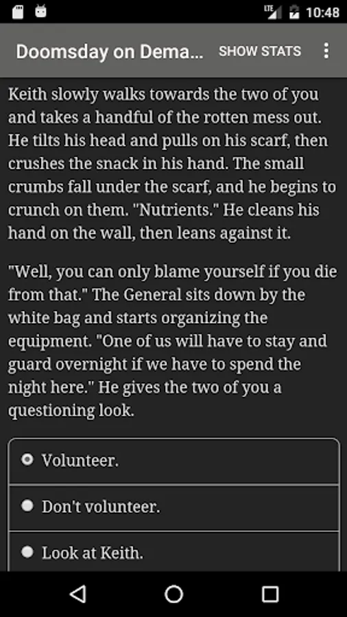 "Doomsday on Demand 2" is a 135,000 word interactive novel by Norbert M., where your choices control the story. It's entirely text-based—without graphics or sound effects—and fueled by the vast, unstoppable power of your imagination.