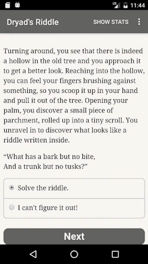 "The Dryad's Riddle" is a 70,000 word interactive fantasy novel by Avery Moore, where your choices control the story. It's entirely text-based—without graphics or sound effects—and fueled by the vast, unstoppable power of your imagination.