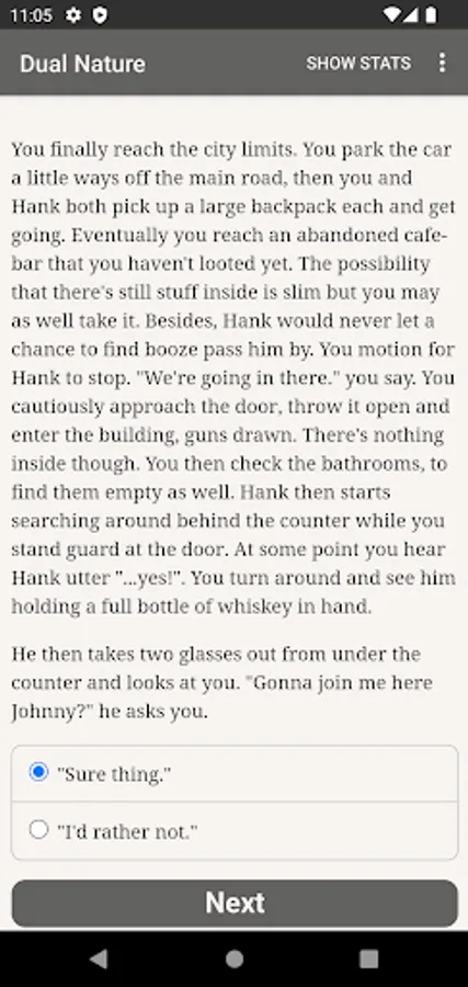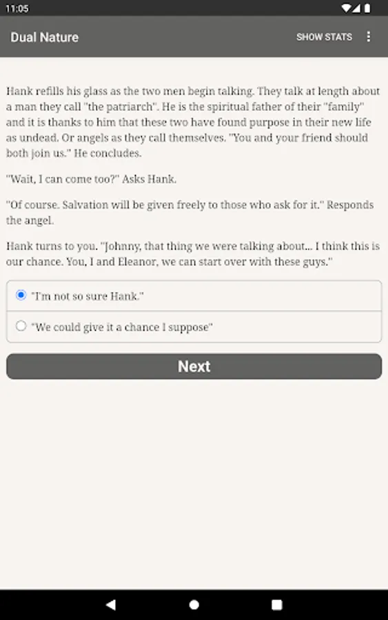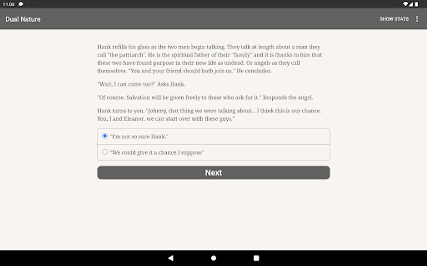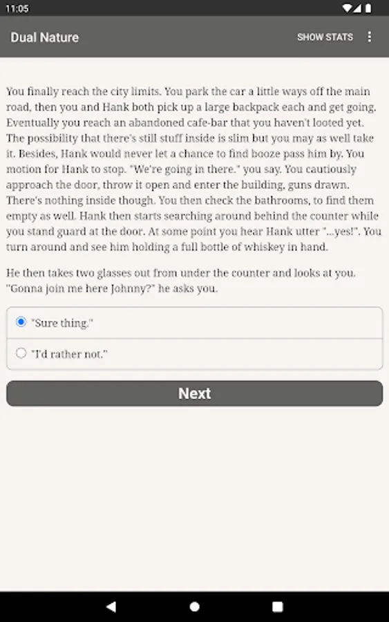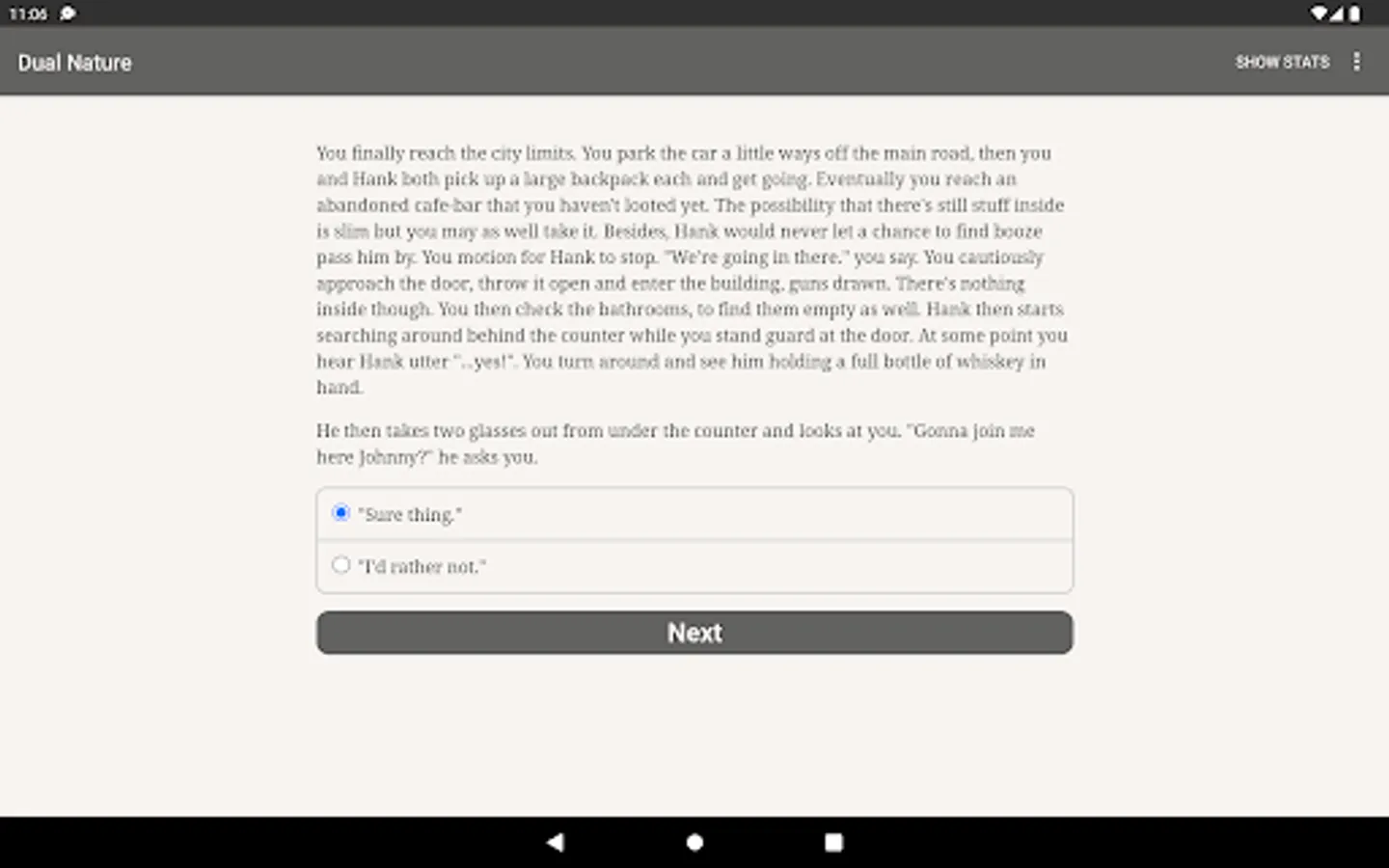 Dual Nature is a 55,000-word interactive novel by Nikos Nikolakopoulos, where your choices control the story. It's entirely text-based, without graphics or sound effects, and fueled by the vast, unstoppable power of your imagination.