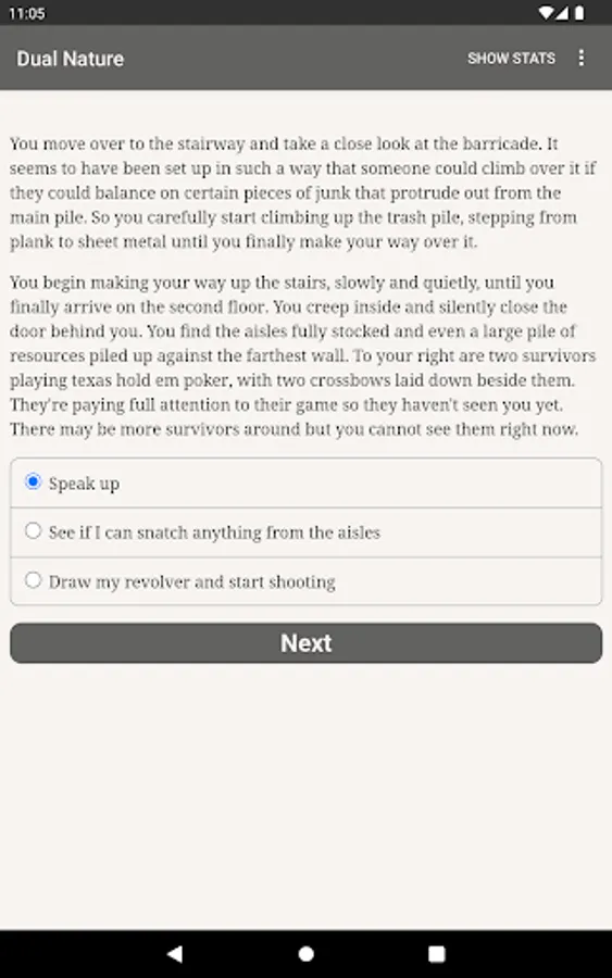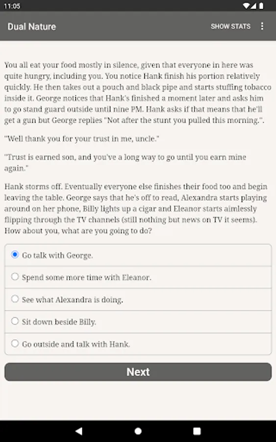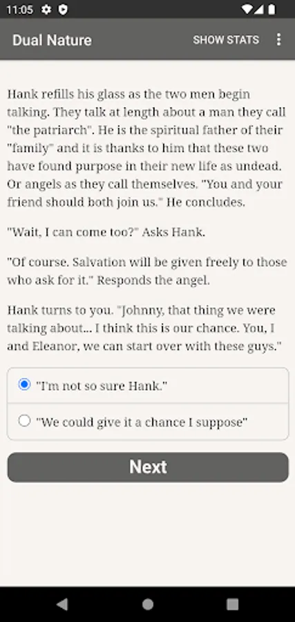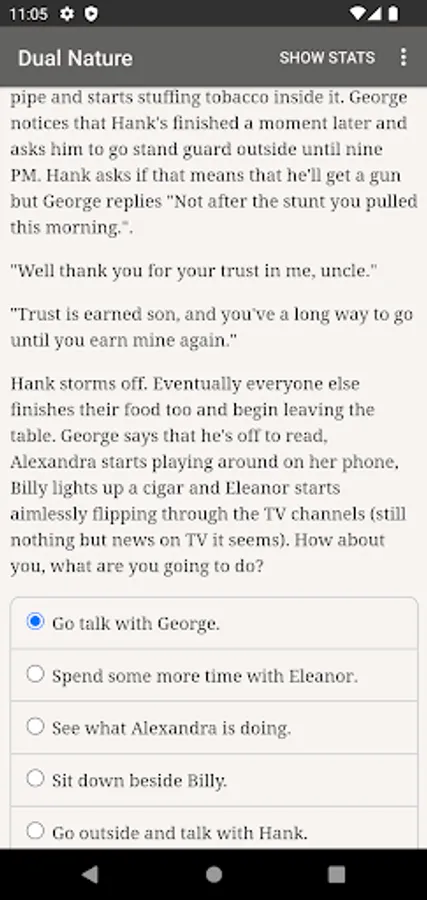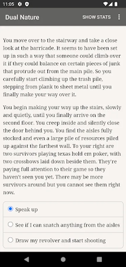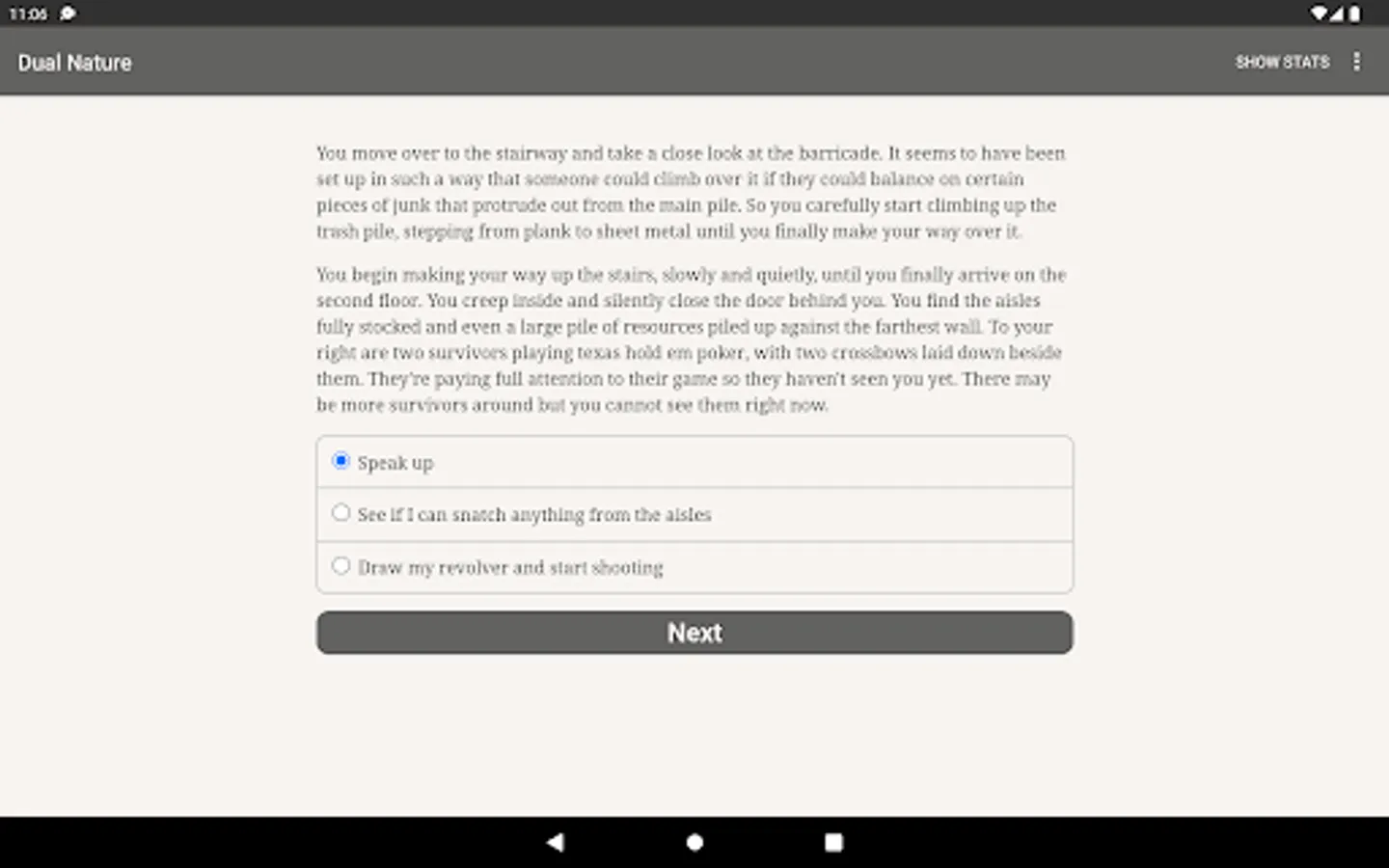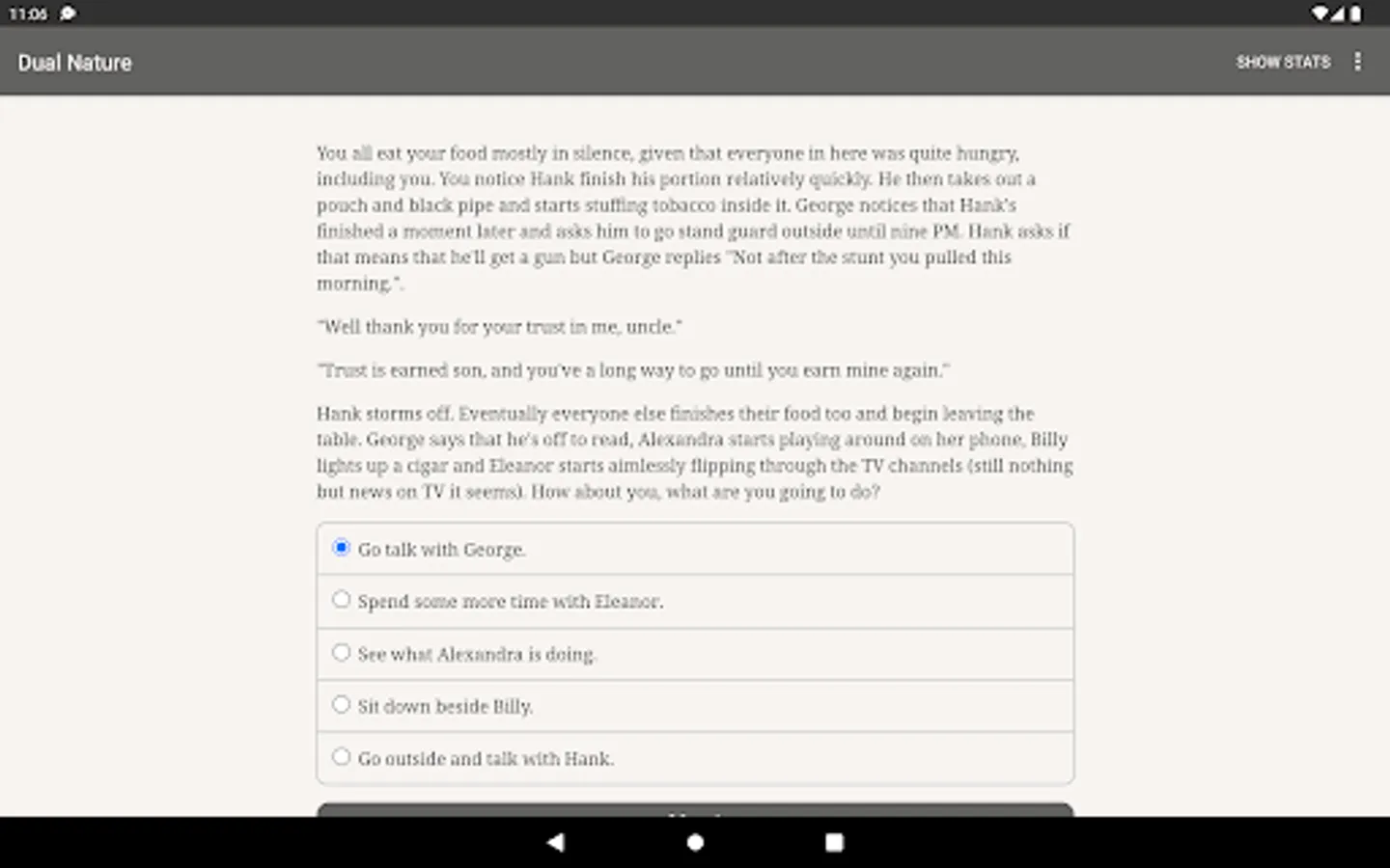 Dual Nature is a 55,000-word interactive novel by Nikos Nikolakopoulos, where your choices control the story. It's entirely text-based, without graphics or sound effects, and fueled by the vast, unstoppable power of your imagination.