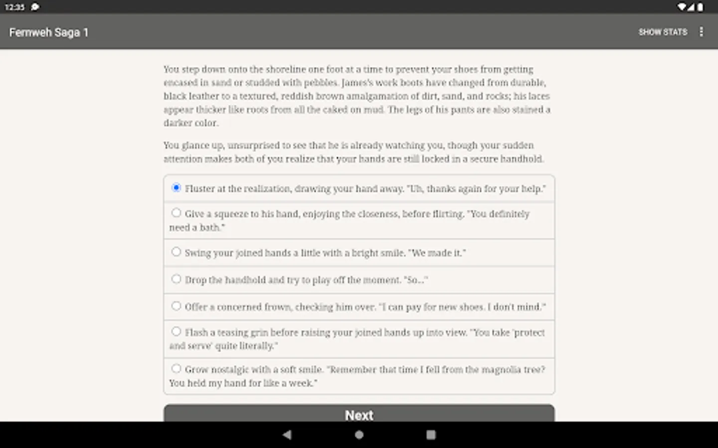 "The Fernweh Saga: Book One" is a 600,000-word interactive, romantic thriller novel by Aelsa Trevelyan. It’s entirely text-based, without graphics or sound effects, and fueled by the vast, unstoppable power of your imagination.