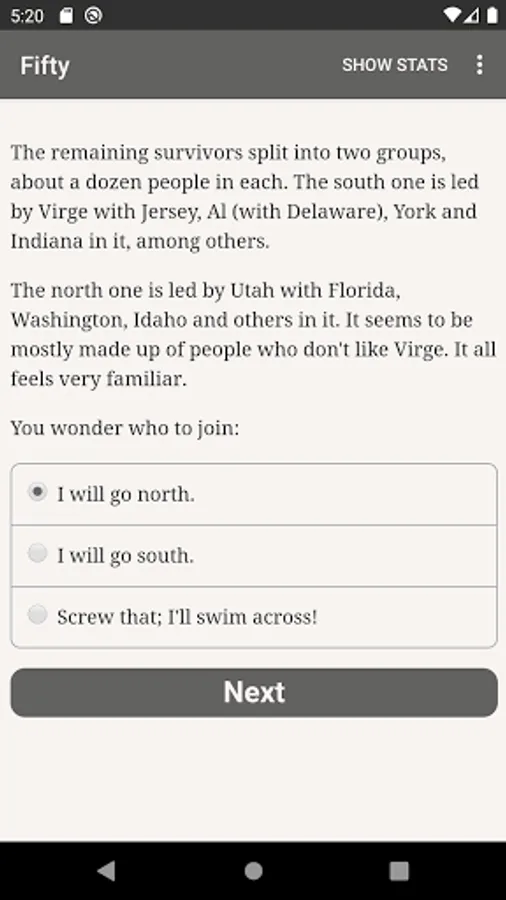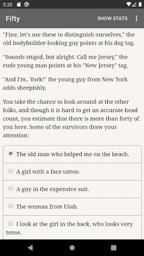 You are one of the 50 strangers stranded on a mysterious island. None of you remember how you got here or even your names, so you use the names on the dog tags you all have on your necks – the names of the fifty states. Will you survive and uncover the island’s secrets or perish to its many dangers?