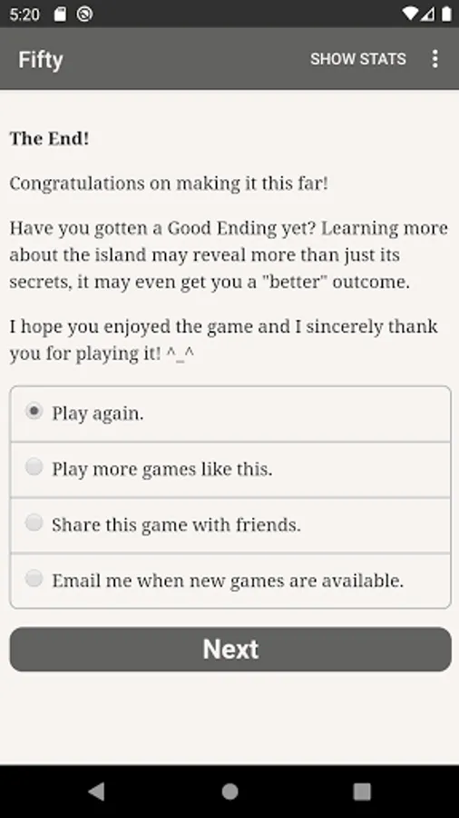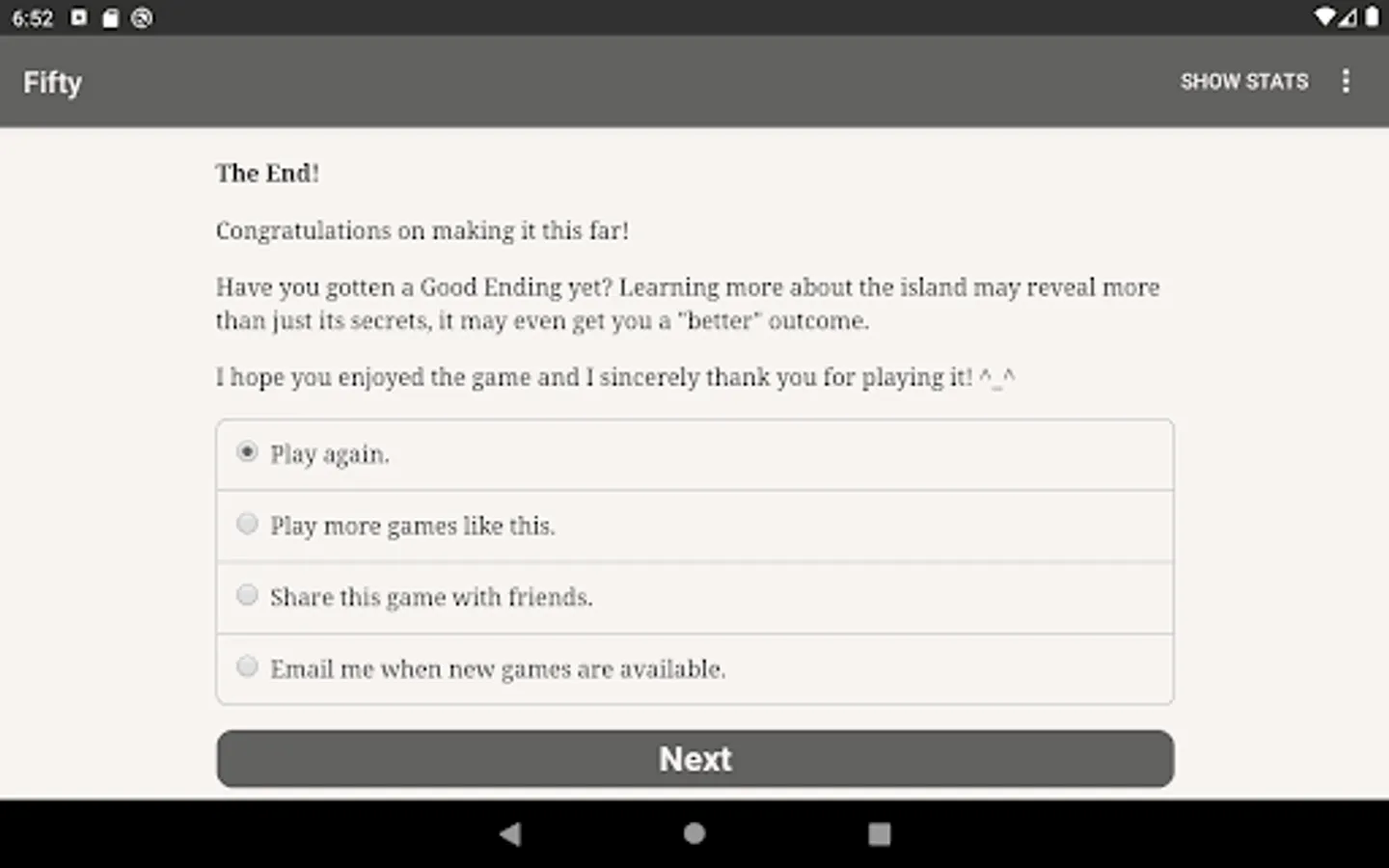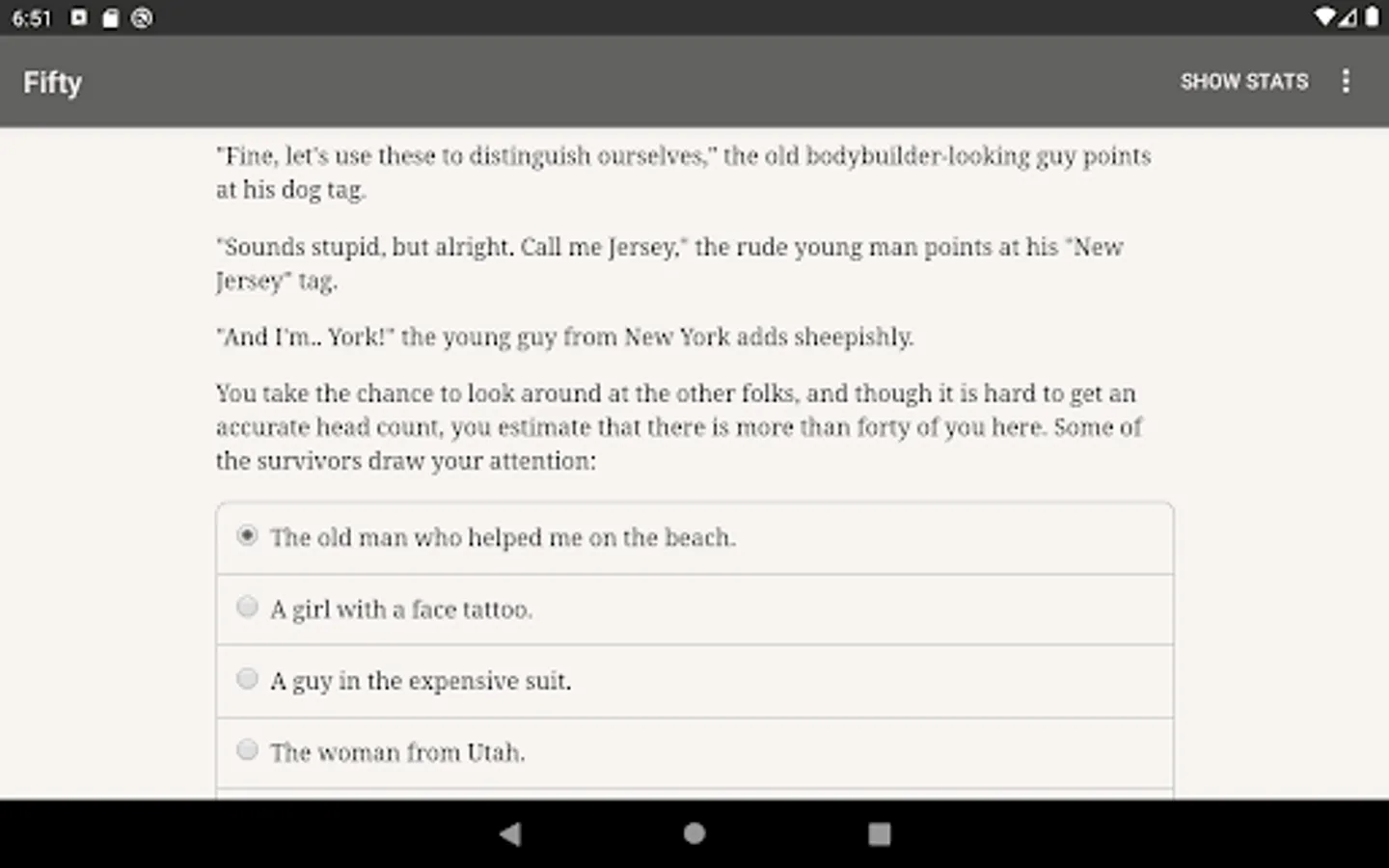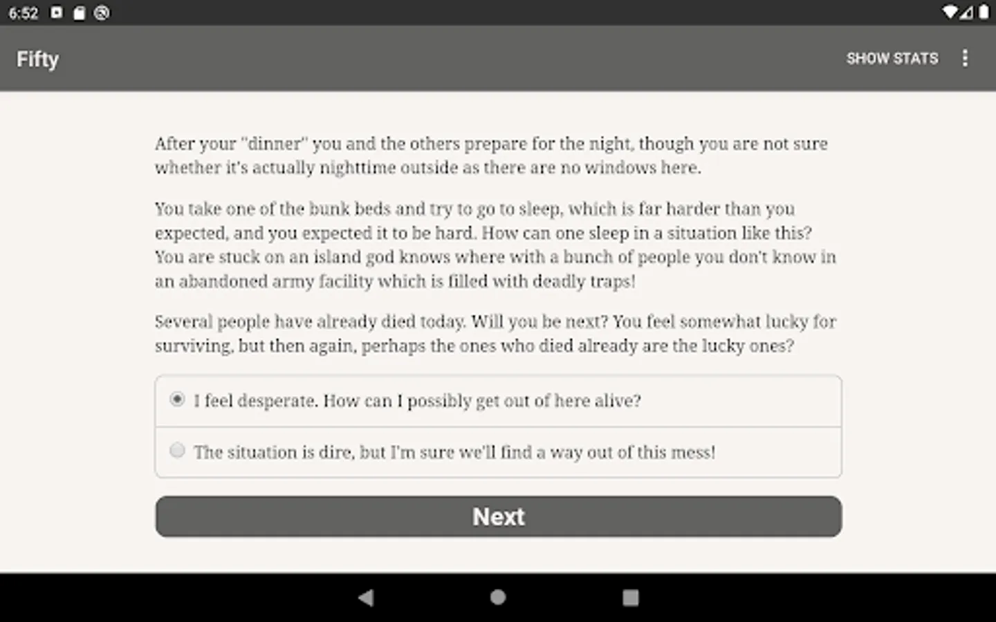 Fifty is a 56,000-word interactive thriller novel by Rustem Khafizov. It is entirely text-based, without graphics or sound effects, and fueled by the vast, unstoppable power of your imagination.