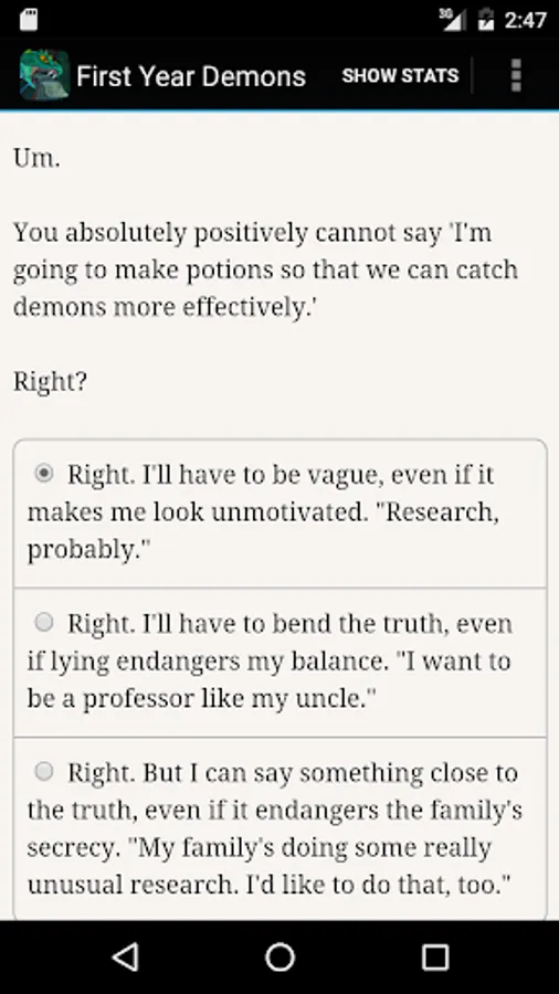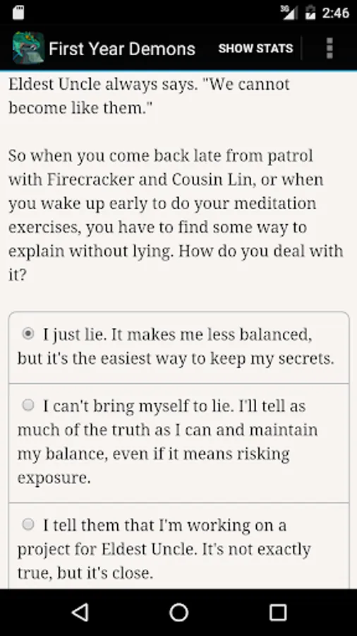 As the youngest member of a family with a secret and ancient duty to keep China safe from demons, you must balance your relatives' traditional values and expectations with the challenges of your first year at college and your secret study of potions, sword, and spells.