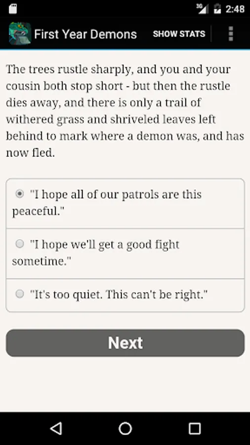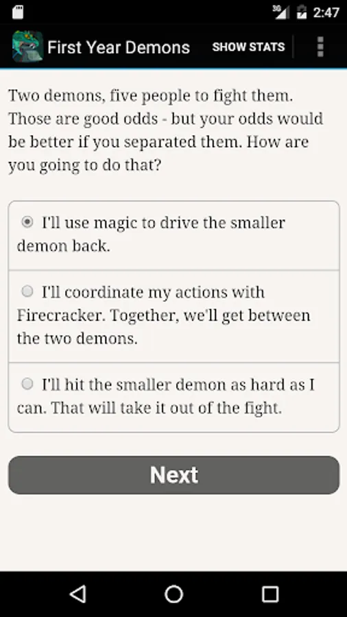 "First Year Demons" is an interactive fantasy novel by Rebecca Slitt, author of "Psy High." Your choices control the story. It's two games in one: a 30,000-word educational game, and a 43,000-word version of the same story that's just for fun. Both games are entirely text-based--without graphics or sound effects--and fueled by the vast, unstoppable power of your imagination.