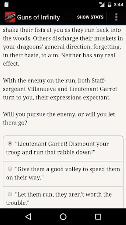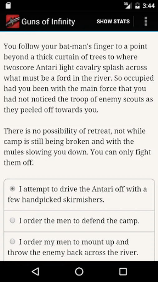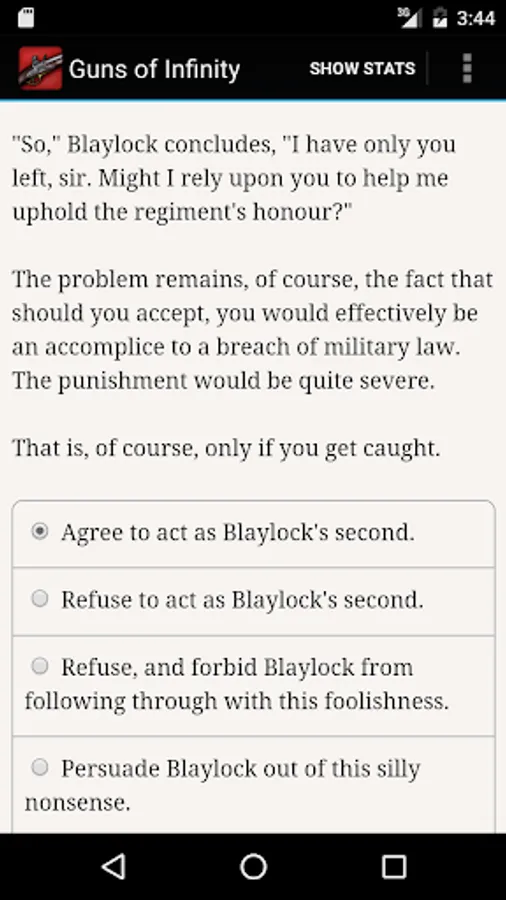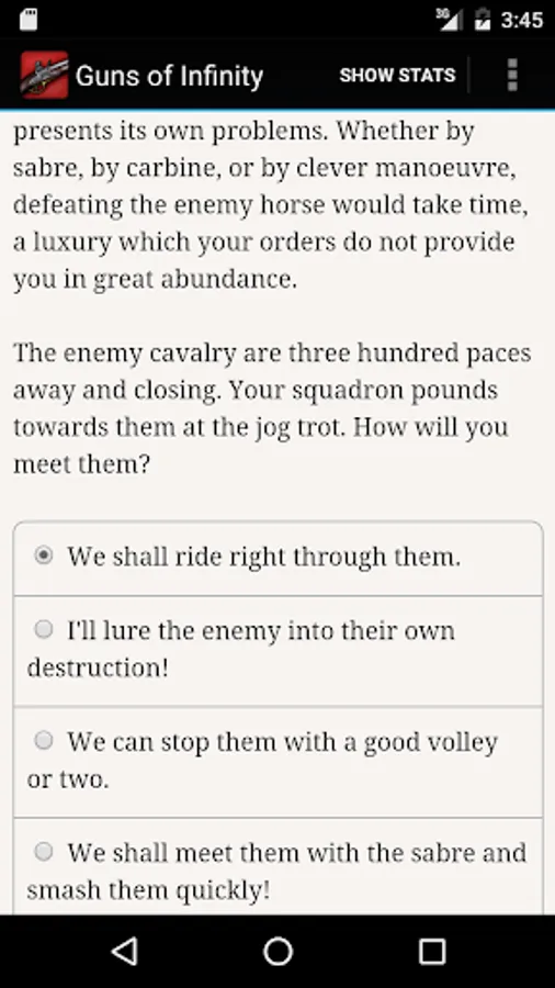 "Guns of Infinity" is a 440,000 word interactive novel by Paul Wang, author of "Sabres of Infinity," "Mecha Ace," and "The Hero of Kendrickstone." Your choices control the story. It's entirely text-based—without graphics or sound effects—and fueled by the vast, unstoppable power of your imagination.