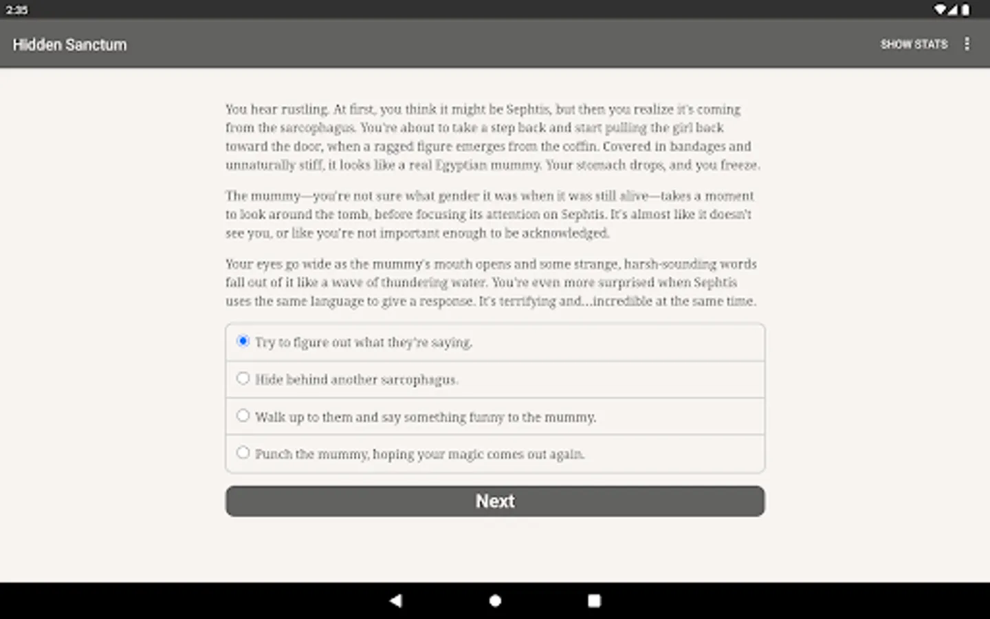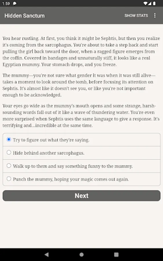 ● Speak with ancient gods and mythical creatures, or throw some punches. Will you try to punch a mummy?