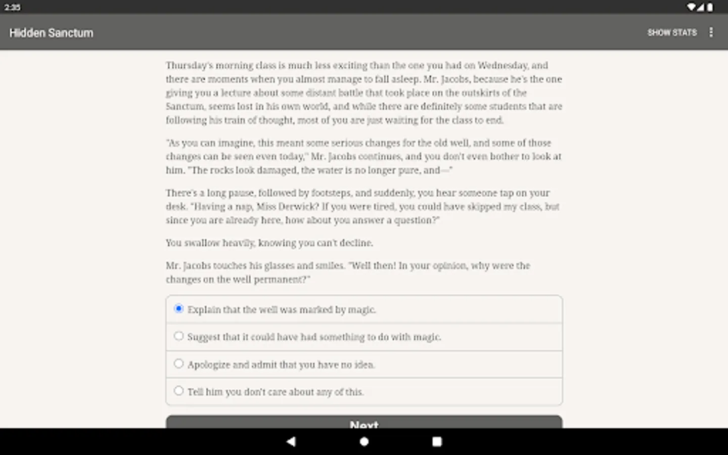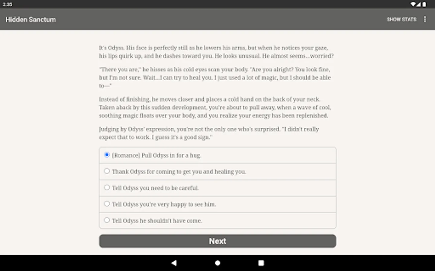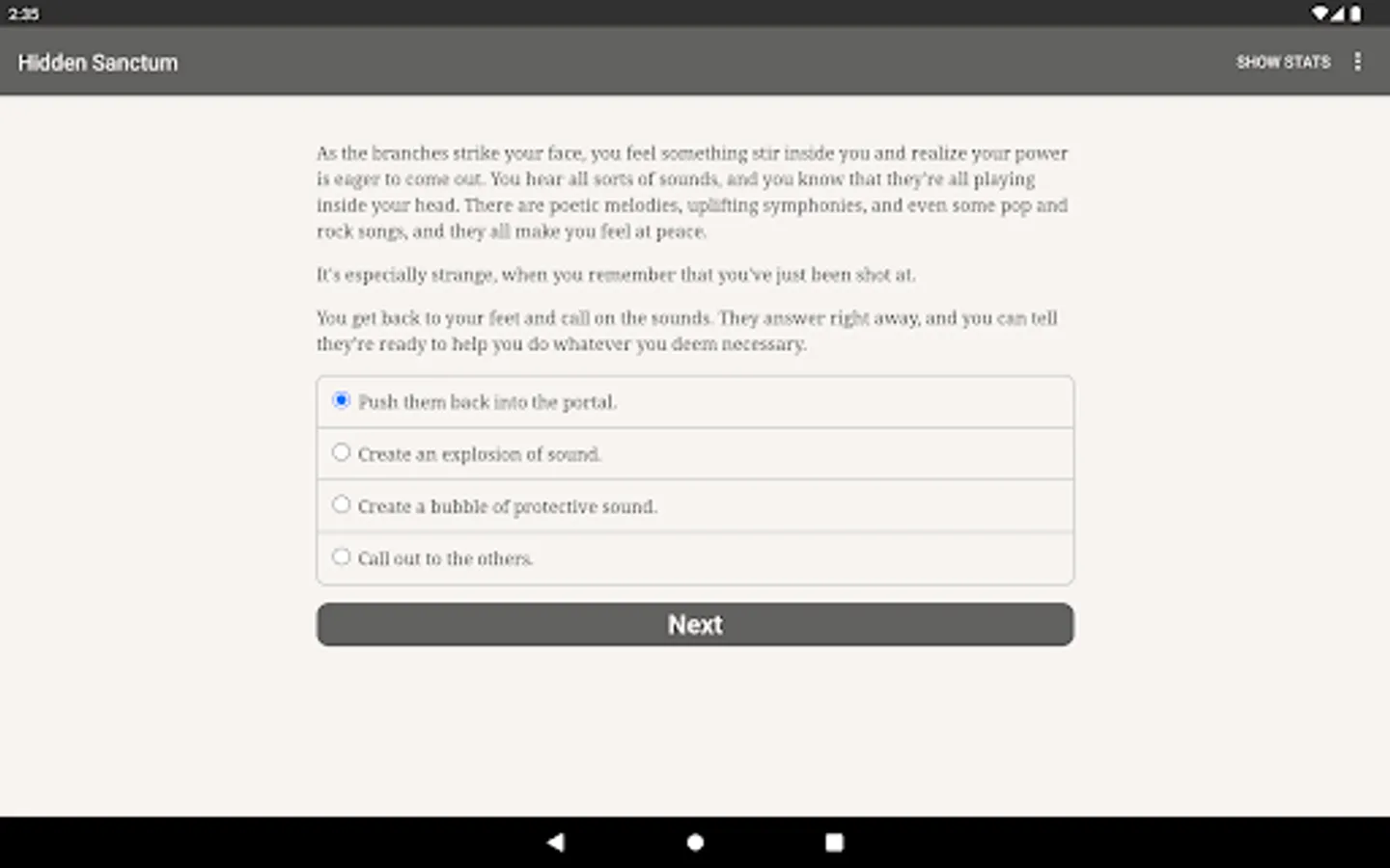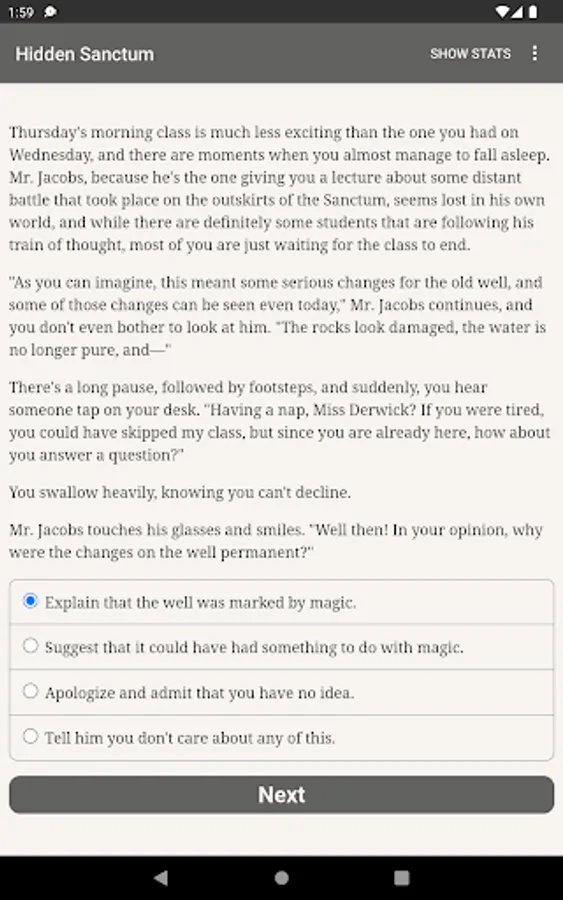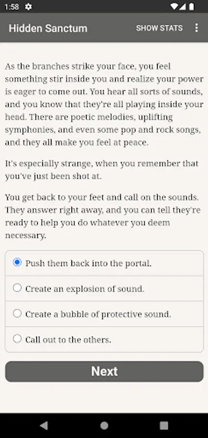 "Hidden Sanctum" is an enchanting 360,000-word interactive modern fantasy game by Dariel Ivalyen. It's entirely text-based—without graphics or sound effects—and fueled by the vast, unstoppable power of your imagination. The story is set in a magical place known as the Hidden Sanctum, where unique people—just like you—are taken to learn the truth about the world and discover their true potential.