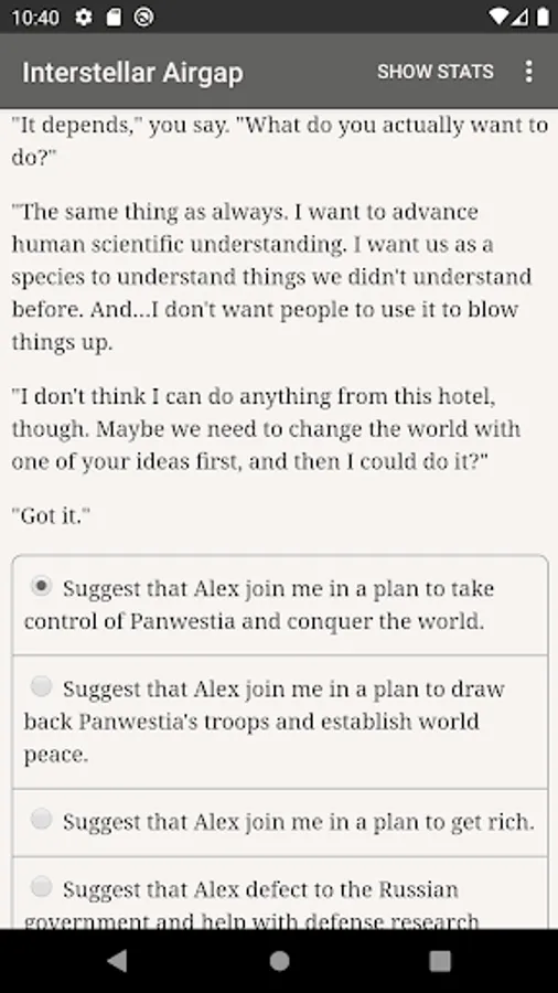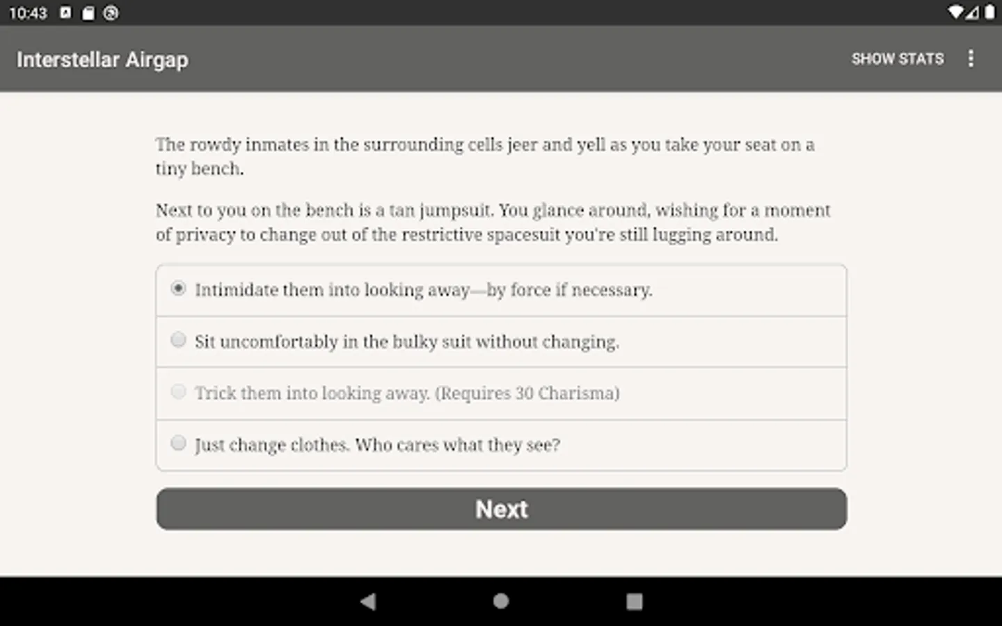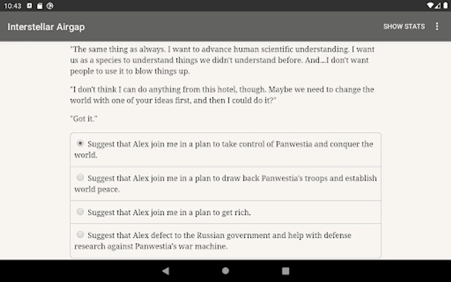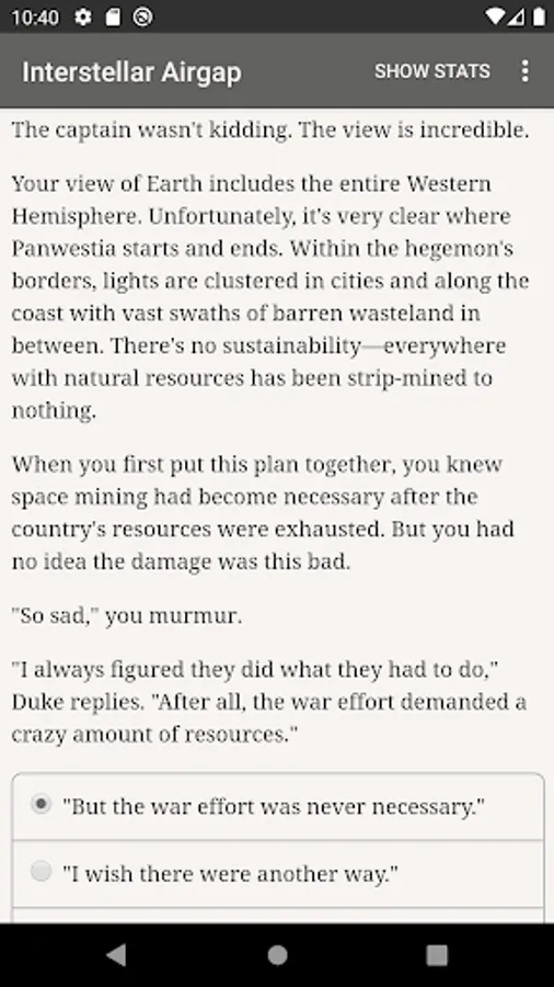 Interstellar Airgap is a thrilling 220,000-word interactive science fiction novel by John Lance, where your choices control the story. It's entirely text-based—without graphics or sound effects—and fueled by the vast, unstoppable power of your imagination.