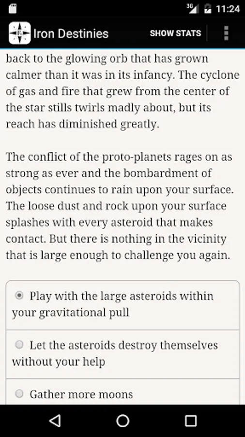 "The Iron Destinies" is an interactive sci-fi novel by David Berner, where your choices control the story. It's entirely text-based--455,000 words, without graphics or sound effects--and fueled by the vast, unstoppable power of your imagination.