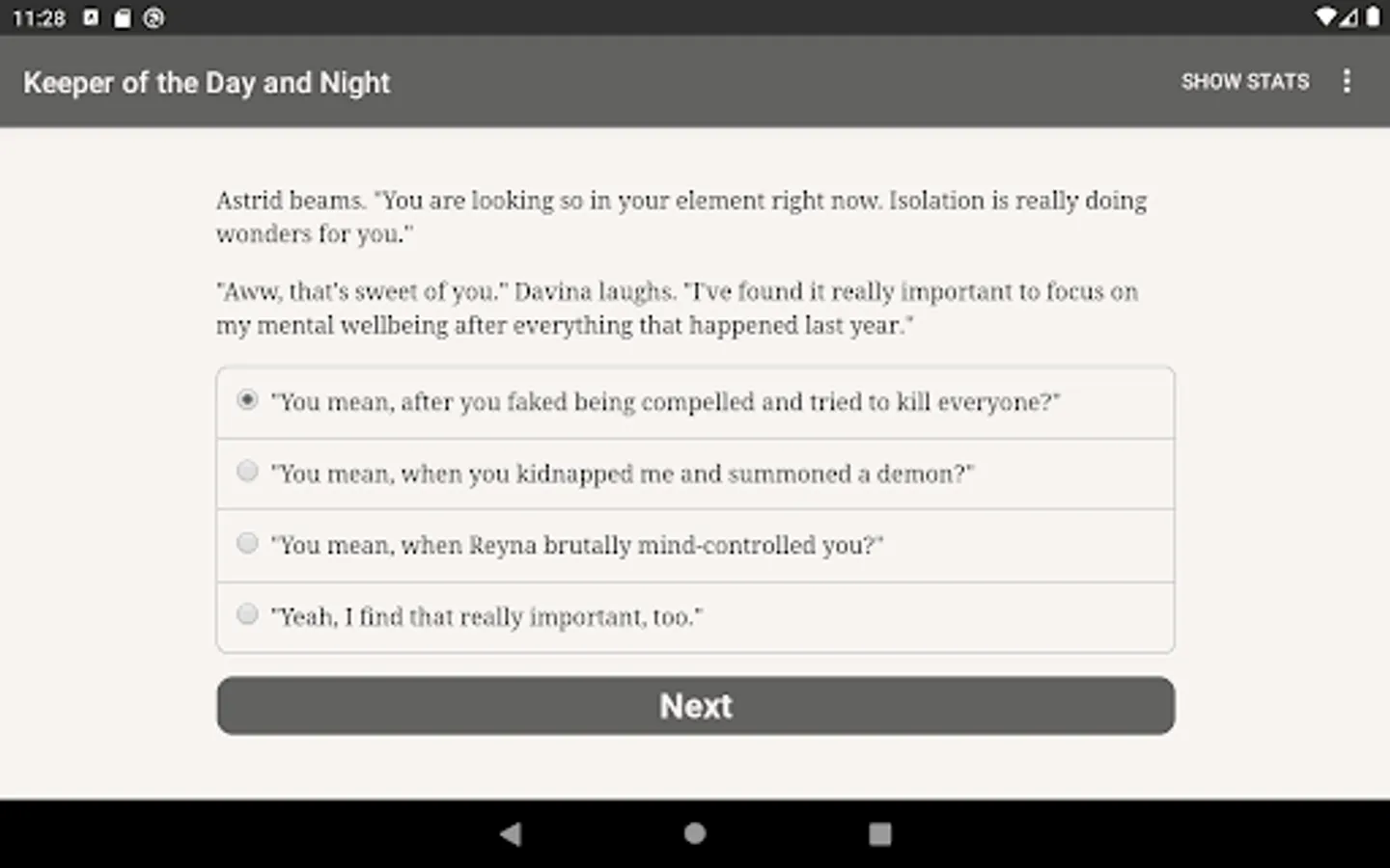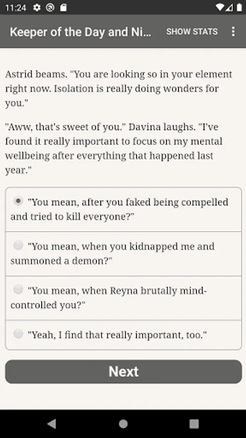 Keeper of Day and Night is a 390,000 word interactive urban fantasy novel by Brynn Chernosky, where your choices control the story. It’s entirely text-based—without graphics or sound effects—and fueled by the vast, unstoppable power of your imagination.