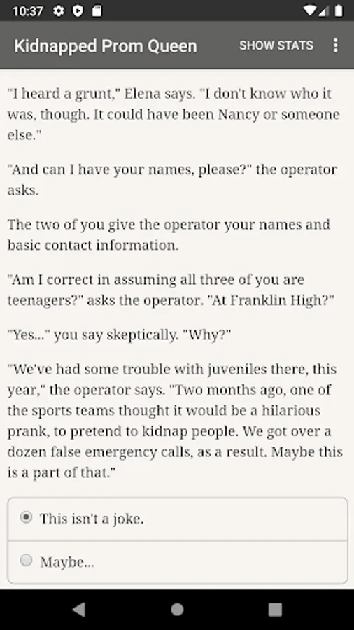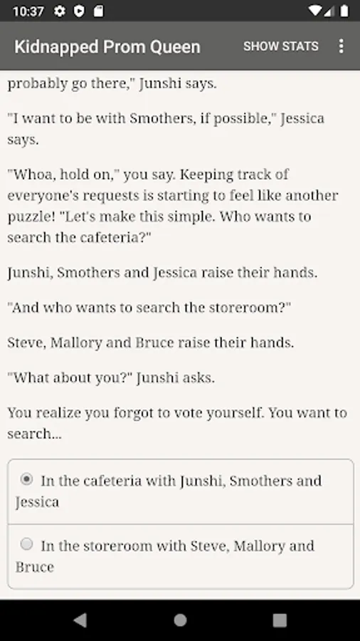 The Kidnapped Prom Queen is an exciting 120,000 word interactive novel by Michael Gray, where your choices control the story. It's entirely text-based—without graphics or sound effects—and fueled by the vast, unstoppable power of your imagination.