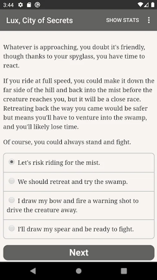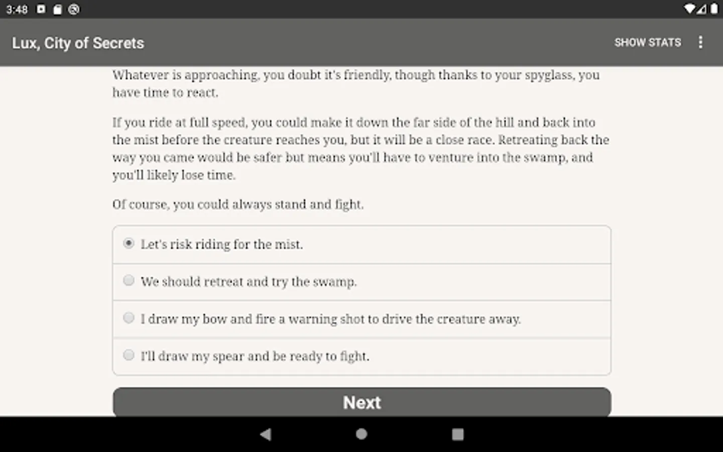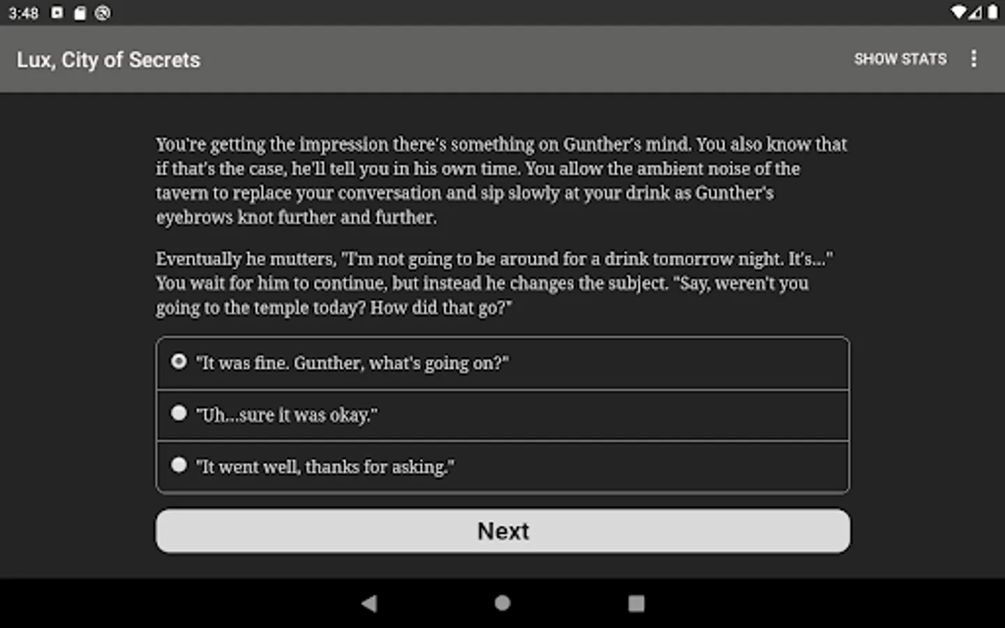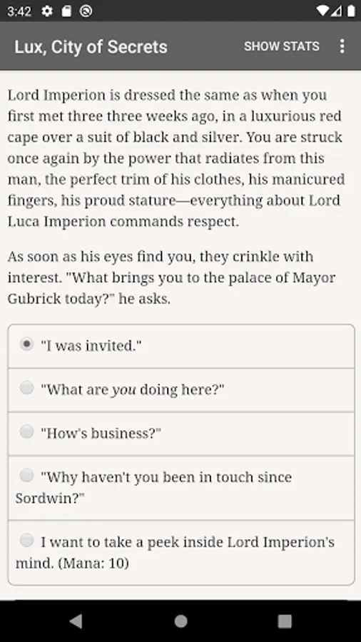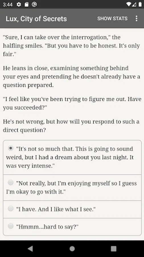Lux, City of Secrets is a 438,000 word immersive interactive experience by Thom Baylay. It’s entirely text-based--without graphics or sound effects--and fueled by the vast unstoppable power of your imagination.