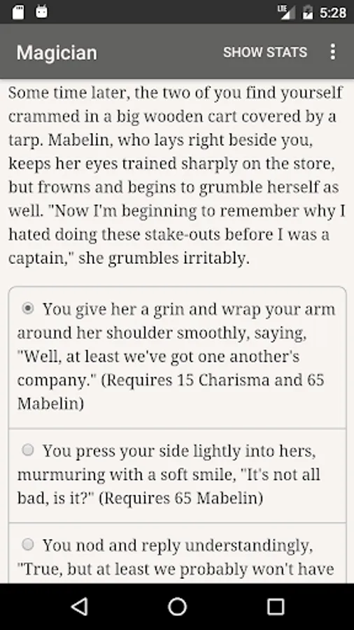 The Magician's Burden is a 210,000 word interactive slice of life novel by Samuel Young, where your choices control the story. It's text-based, with vivid character illustrations, and fueled by the vast, unstoppable power of your imagination.