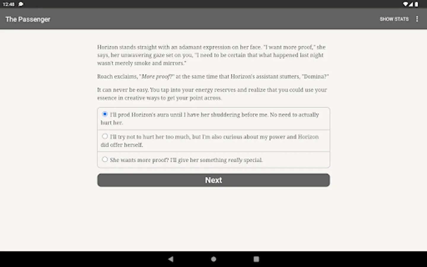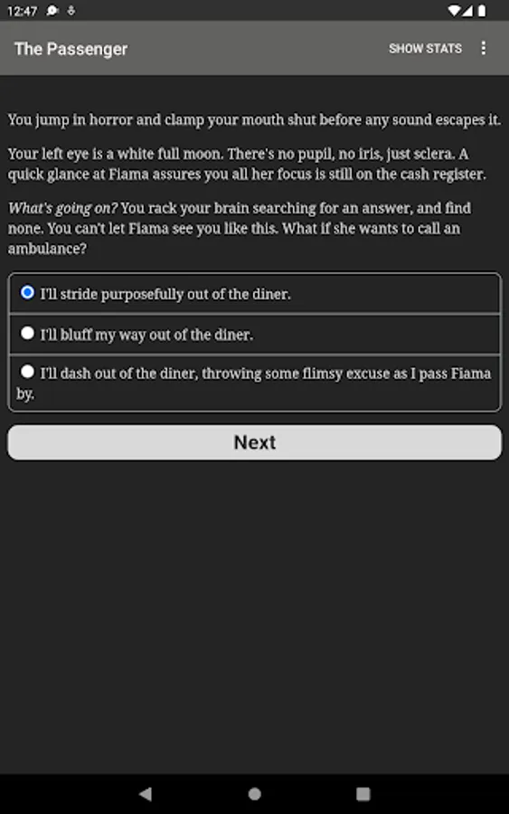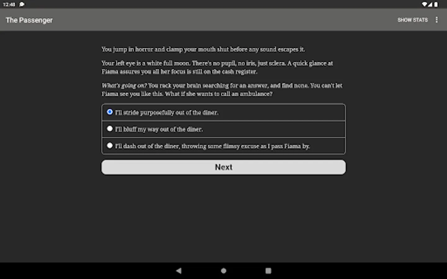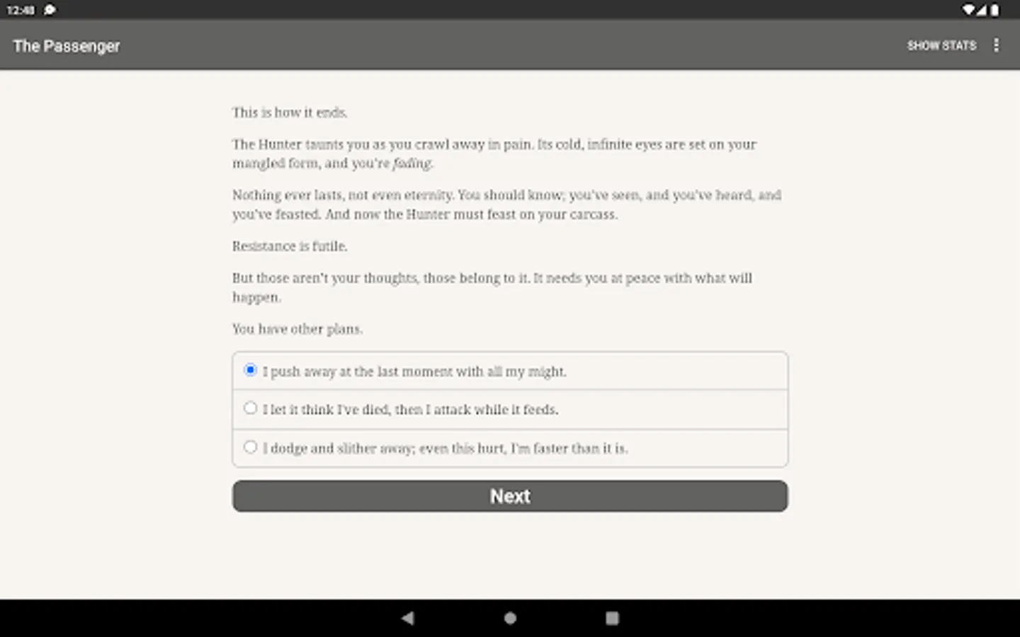 "vThe Passenger" is a 380,000-word interactive cosmic horror novel by Jime Rolón. It's entirely text-based, without graphics or sound effects, and fueled by the vast, unstoppable power of your imagination.