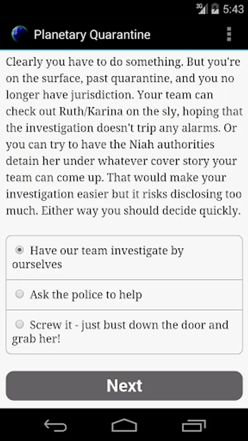 You’re a quarantine agent – an extrajudicial lawman who lets only approved people and products leave Earth – and in a few days your starship will be arriving at your new home world. A dead passenger, a mysterious society, and a potential threat to interstellar civilization all await you. Solve the case and save the world. Build your life while building society. Explore this richly intricate game where new surprises await you each time you play!