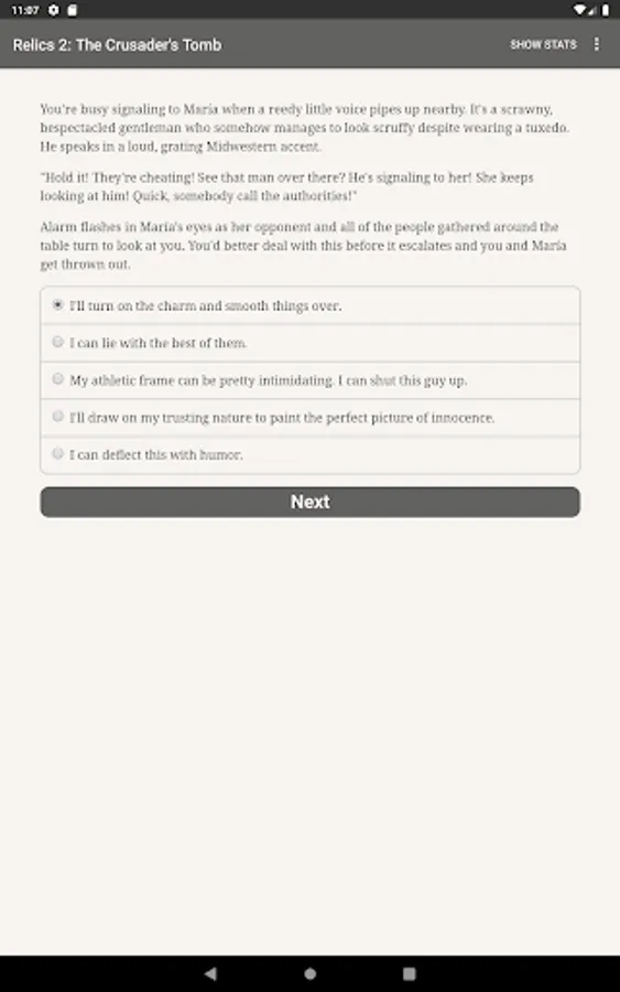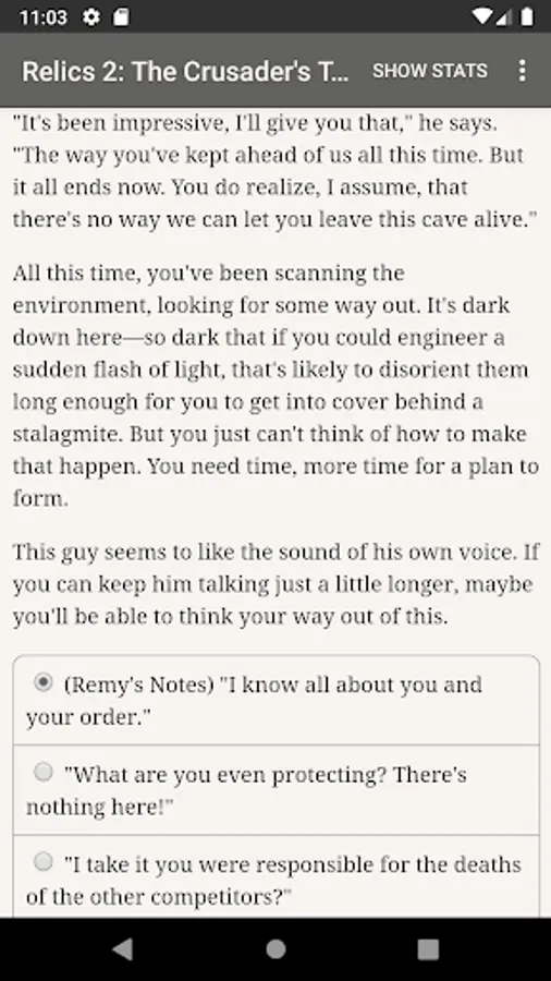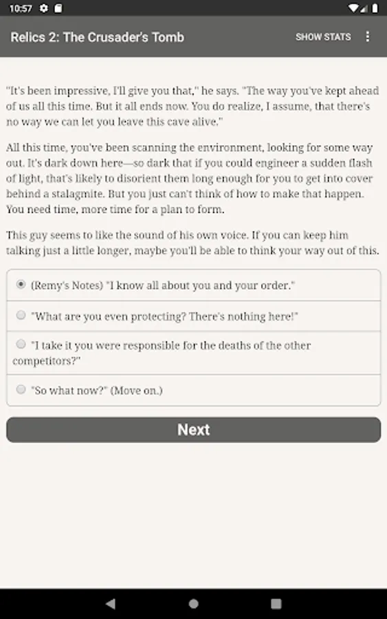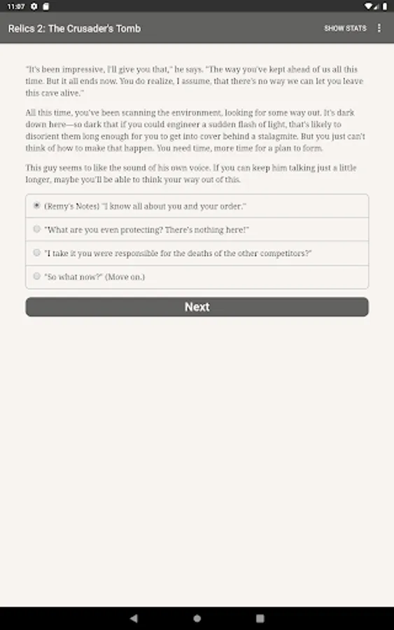 "Relics 2: The Crusader’s Tomb," the sequel to "Relics of the Lost Age" and the second game in the Relics trilogy, is an exhilarating 400,000 word interactive adventure novel by James Shaw, where your choices control the story. It’s entirely text-based—without graphics or sound effects—and fueled by the vast, unstoppable power of your imagination. Step into the weathered boots of a swashbuckling 1930s archaeologist and embark on a wild ride across Europe and Asia, racing to stay ahead of your vicious and amoral rivals, facing murderous enemies and intriguing mysteries at every turn, as you strive to beat the odds, solve an ancient mystery, and uncover the secrets waiting for you in the long-lost crusader’s tomb.