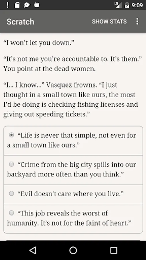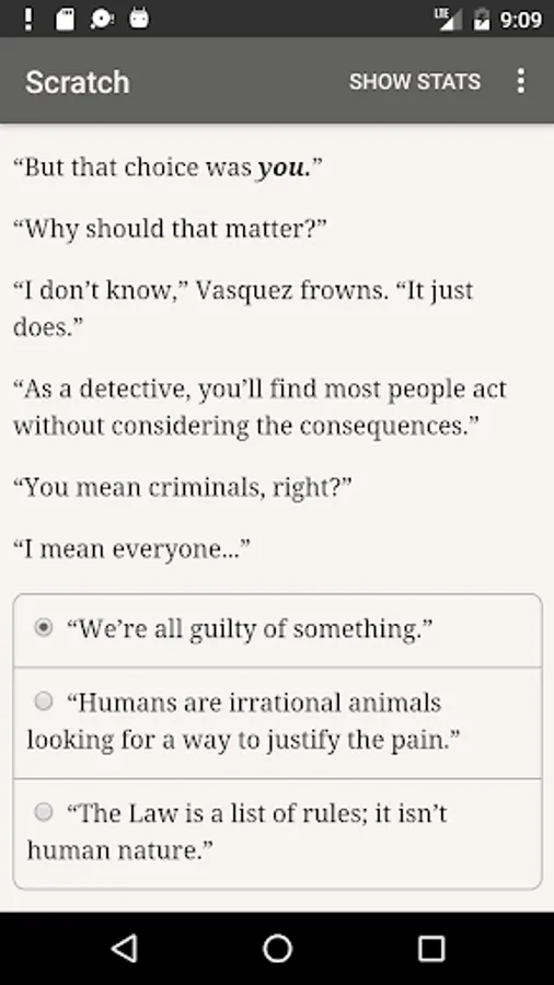 "Scratch" is a 165,000 word interactive murder mystery by Cloud Buchholz, where your choices control the story. It's entirely text-based—without graphics or sound effects—and fueled by the vast, unstoppable power of your imagination.
