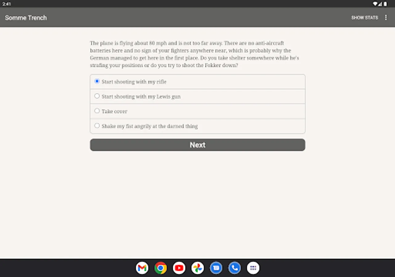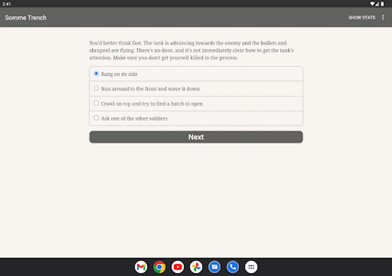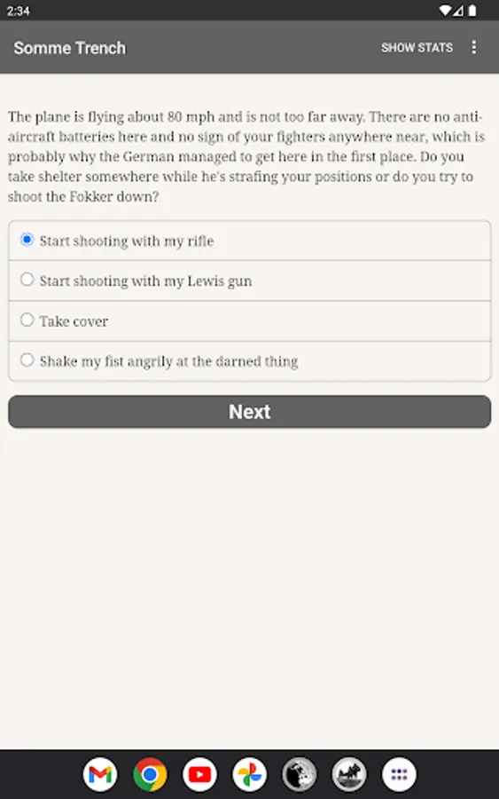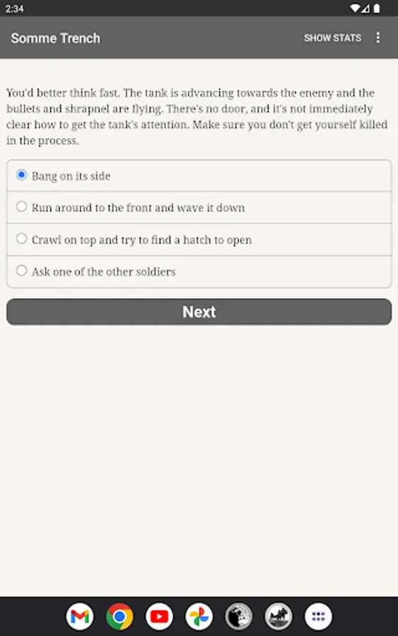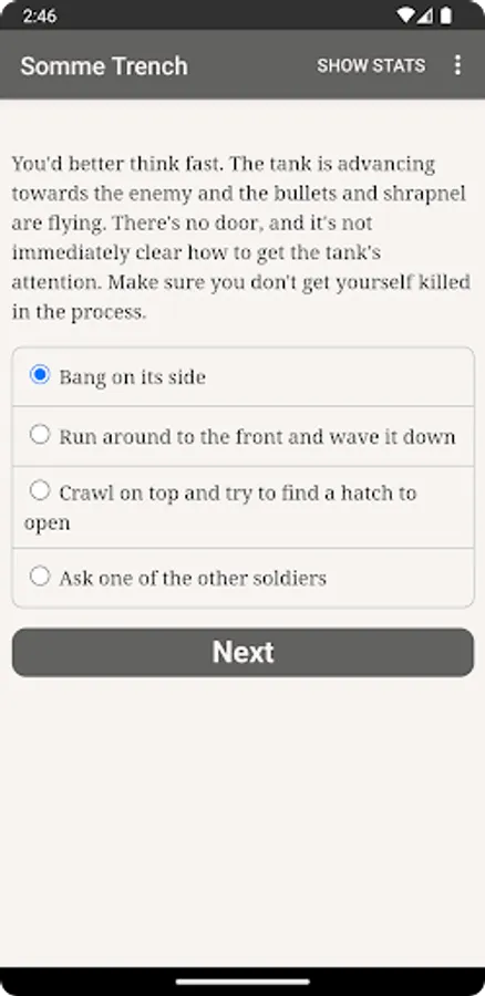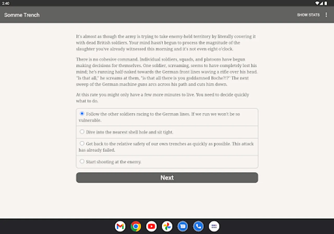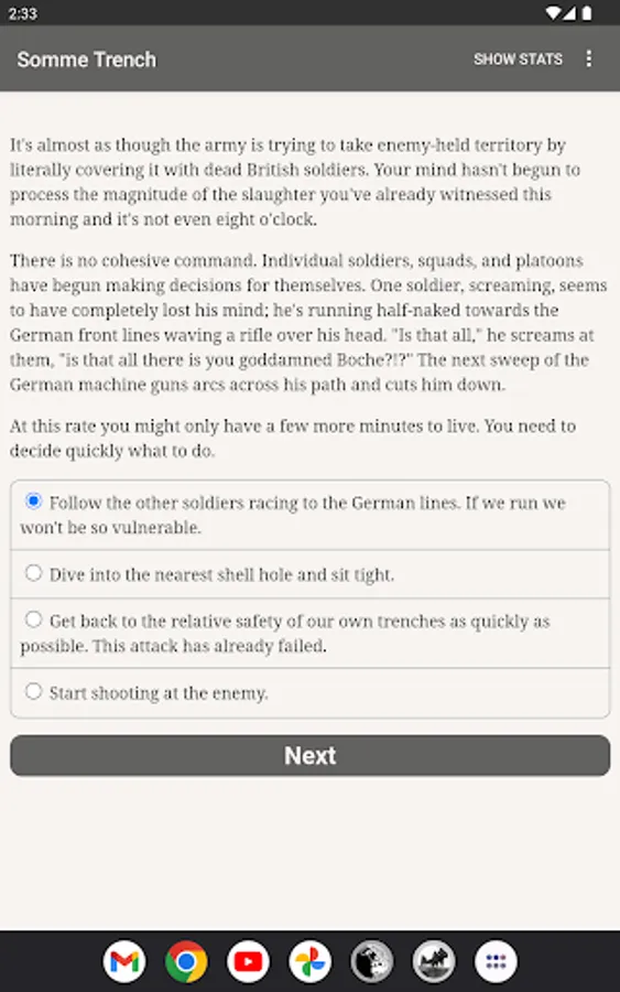 You're a fresh British infantryman at the Battle of the Somme, one of the longest, bloodiest battles of World War One. Can you survive a clash that kills almost twenty thousand of your countrymen on the first morning alone?