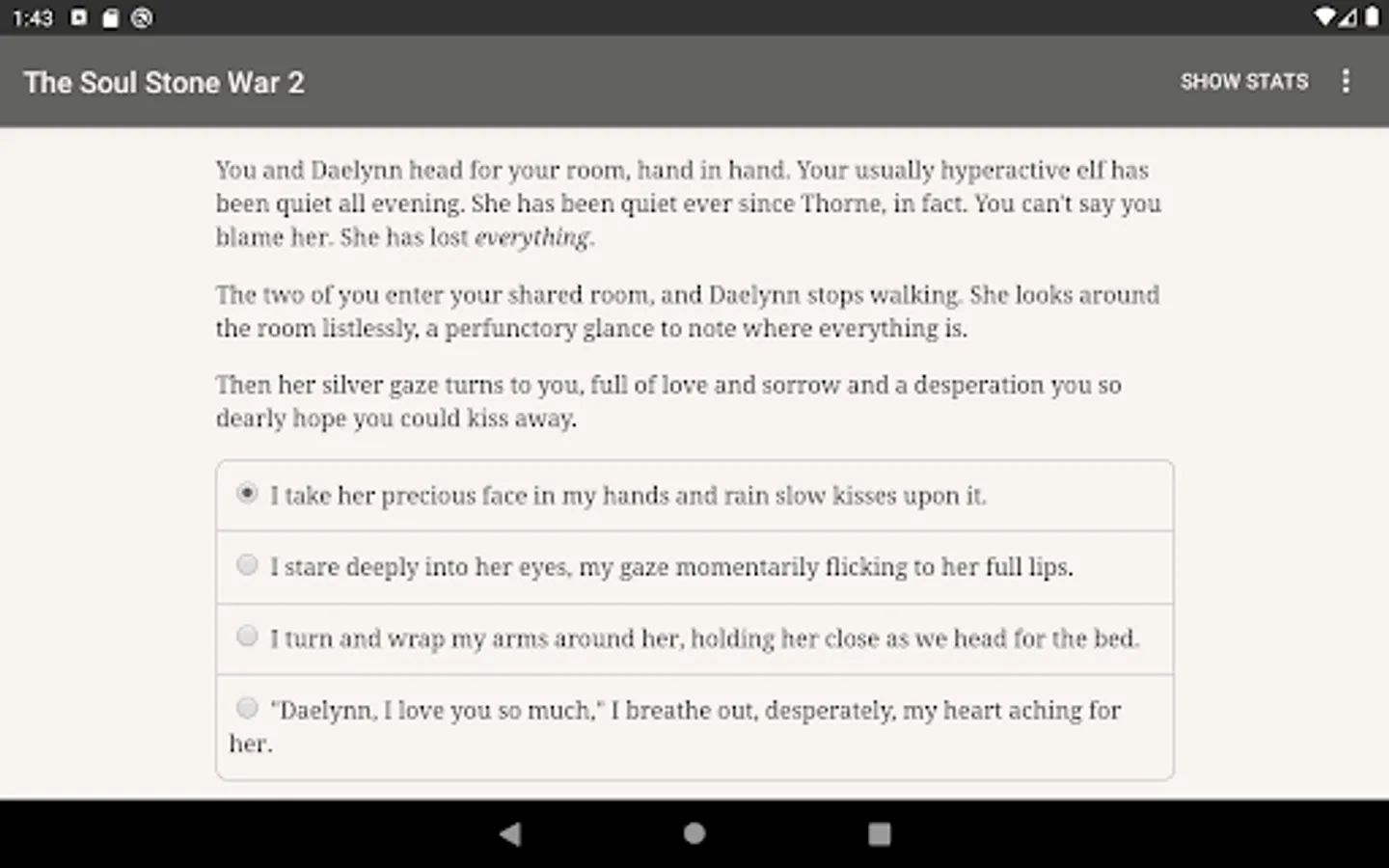 "The Soul Stone War 2" is the thrilling 400,000-word sequel to the interactive fantasy novel "The Soul Stone War". Meet characters old and new, pick up on the friendships and romances you began and grow into the hero that you're meant to be.
