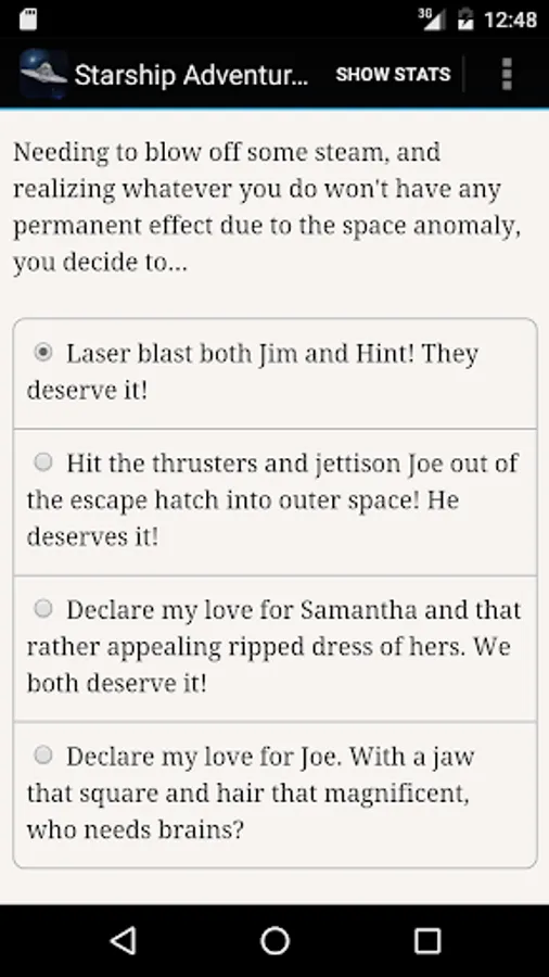 You’re a naturally heroic and quick-thinking space captain flying a starship from world to world while keeping your hair groomed to perfection. It’s your duty to keep the engine running, the scotch flowing, the crew happy, and your outfit looking fabulous. There’s carnivorous flora, deceptive aliens, space anomalies, horrifying creatures, and too many arch enemies to keep track of them all! Can you survive?