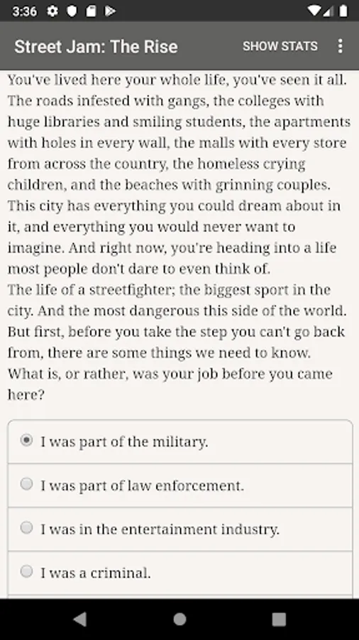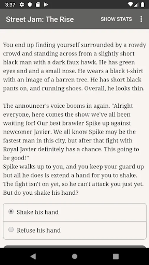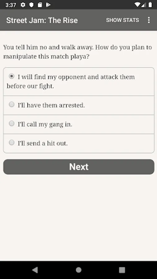 Street Jam: The Rise is a violent 370,000 word interactive adult novel by Tevin Betts, where your choices control the story. It's entirely text-based-without graphics or sound effects-and fueled by the vast, unstoppable power of your imagination.