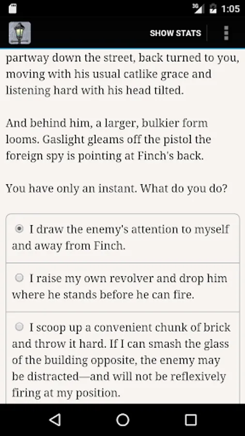 Steam-powered mechs meet forbidden sorcery! "A Study in Steampunk: Choice by Gaslight" is an epic 277,000-word interactive mystery novel by Heather Albano, co-author of "Choice of Broadsides," "Choice of Zombies," and "Choice of Romance: Affairs of the Court." Your choices control the story. It's entirely text-based--without graphics or sound effects--and fueled by the vast, unstoppable power of your imagination.