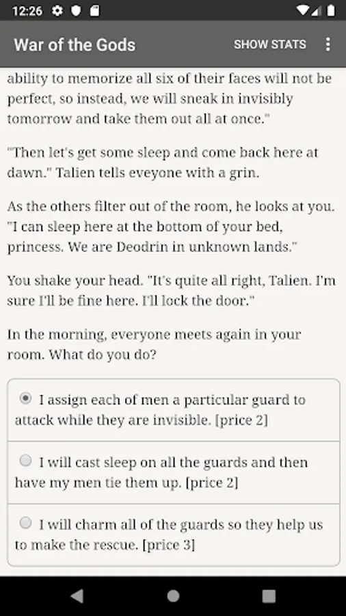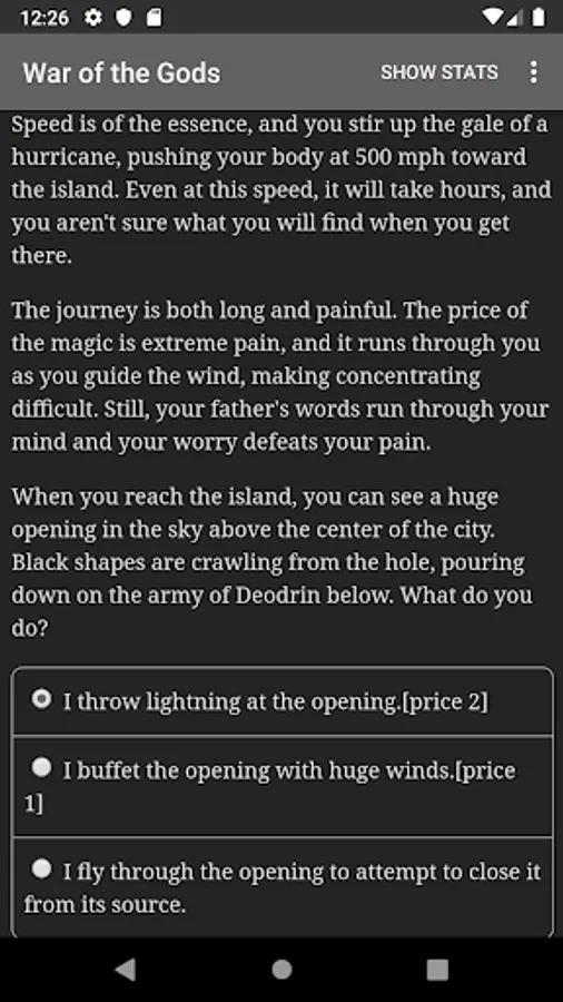 War of the Gods is a 85,000-word interactive novel by Barbara Elzey, where your choices control the story. It's entirely text-based, without graphics or sound effects, and fueled by the vast, unstoppable power of your imagination.