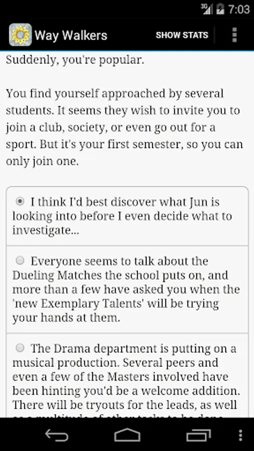 "Way Walkers: University" is a 189,000 word interactive fantasy novel by J. Leigh, where your choices control the story. It's entirely text-based—without graphics or sound effects—and fueled by the vast, unstoppable power of your imagination.