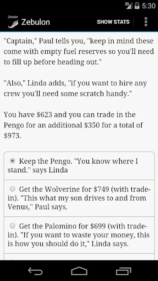 Journey through Space and uncover the secrets of the asteroid Zebulon! Pilot a spacecraft with two loyal sidekicks and your pet goldfish Henry. Travel to the Moon, meet some interesting characters, and then blast off to the Asteroid Belt. Along the way make the right choices to discover the secrets of Zebulon and your own past.