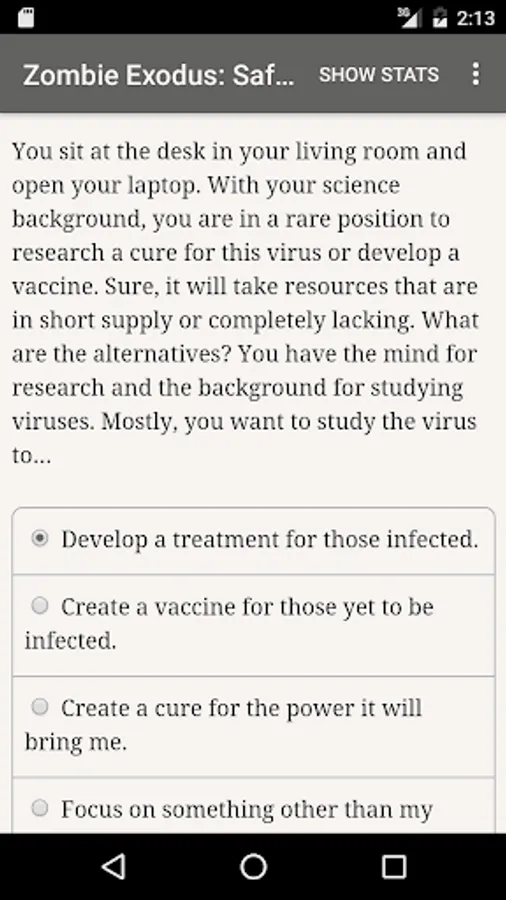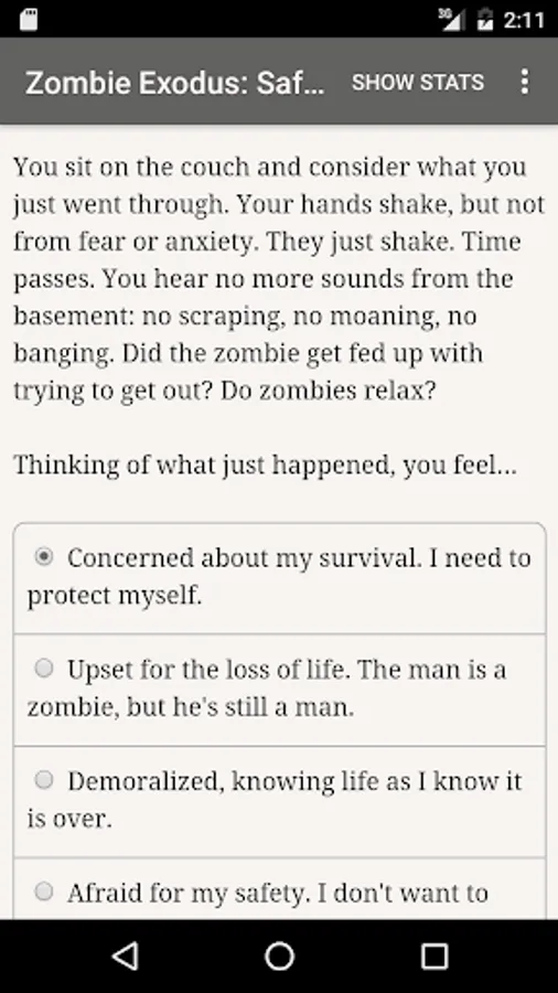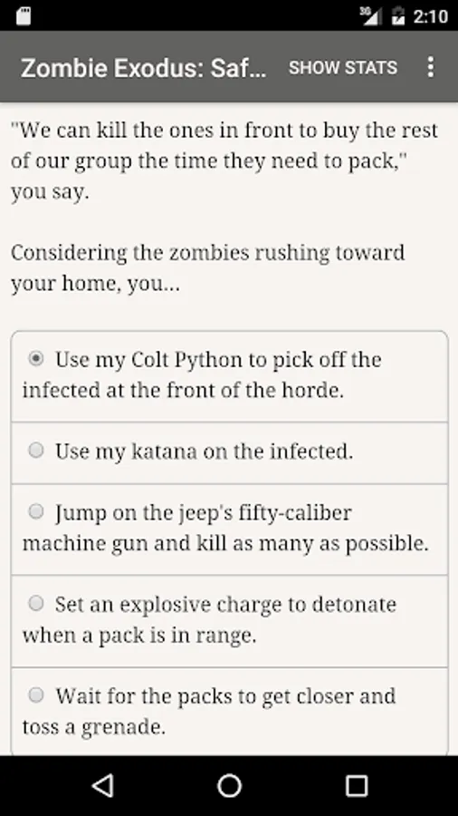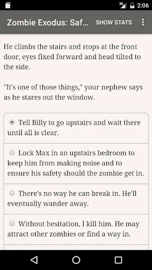 • Choose your skill levels in eighteen different apocalyptic skills such as Stealth, Ranged Weapons, Scavenging, and Survival. Level up your skills after each chapter and choose from hobbies to round out your character.