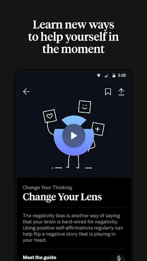 Filled with step-by-step video strategies you can do in as little as one minute on themes like “Change Your Thinking” to help you address negative thought patterns with cognitive strategies; “Move Your Body” to express and release emotions through movement strategies; “Be Mindful” to gain perspective and minimize the negative impact of misunderstood emotions with mindfulness strategies; “Reach Out” to build intimacy and trust, two important tools for emotional wellbeing, with social strategies.