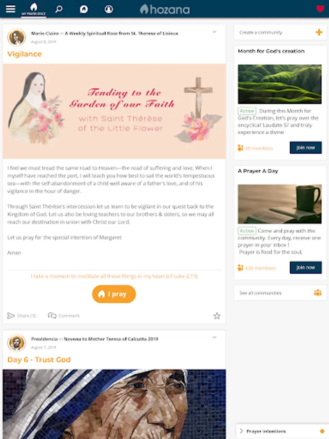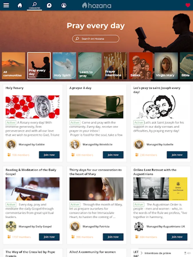 With Hozana, discover a variety of communities of prayer and faith-filled propositions