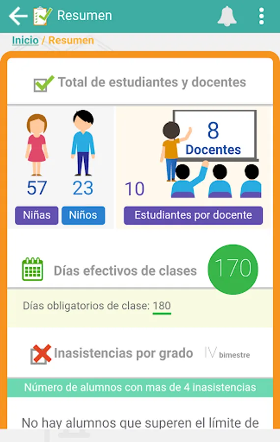 MySchool GT with the director can easily follow up on the main tasks performed daily in their school. In addition, you can make immediate decisions about the challenges facing daily since the application displays indicators and statistics on their property using displays easy to interpret, which include filters with different breakdowns that allow you to display information to respond immediately to your needs.