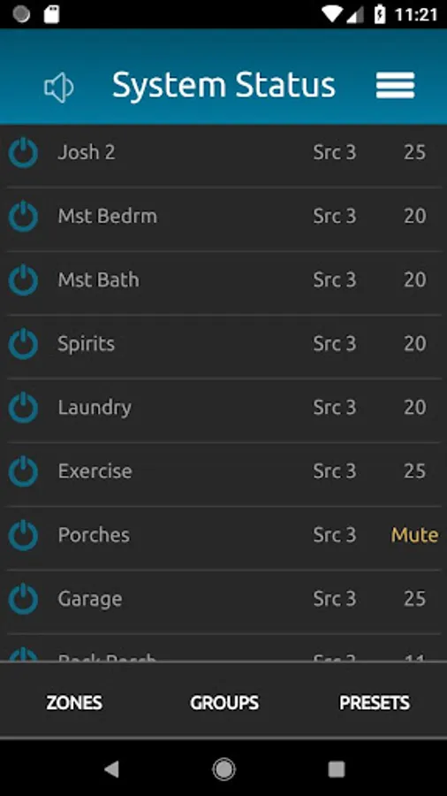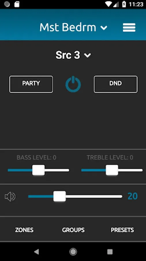 Create groups of zones to set a common source, set a common volume, or relatively control volume across multiple zones. Create audio scenes called presets that set up one or more zones in your home with a single button press. For every zone, set power on/off, source, volume, and DND (Do Not Disturb).