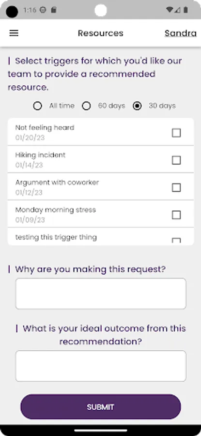 Our app focuses on gathering every single data point needed to run a root-cause analysis of your present-day emotional stress, so we can make precise recommendations to help you accelerate breakthroughs in your mental & emotional health efforts.