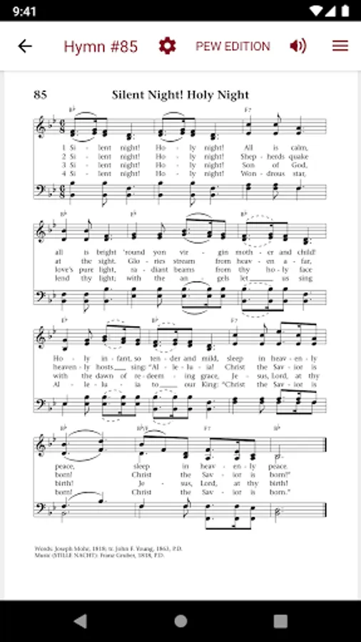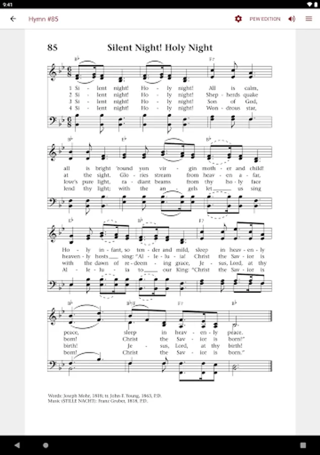 This free app includes more than 220 public domain songs in Lift Up Your Hearts: Psalms, Hymns, and Spiritual Songs, including favorites such as “Amazing Grace,” “To God Be the Glory,” and “My Jesus, I Love Thee.” Through an in-app purchase, you can access to the Pew edition which includes all public domain and copyrighted hymns (all 965 titles in the printed edition).