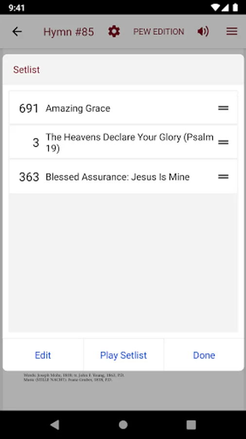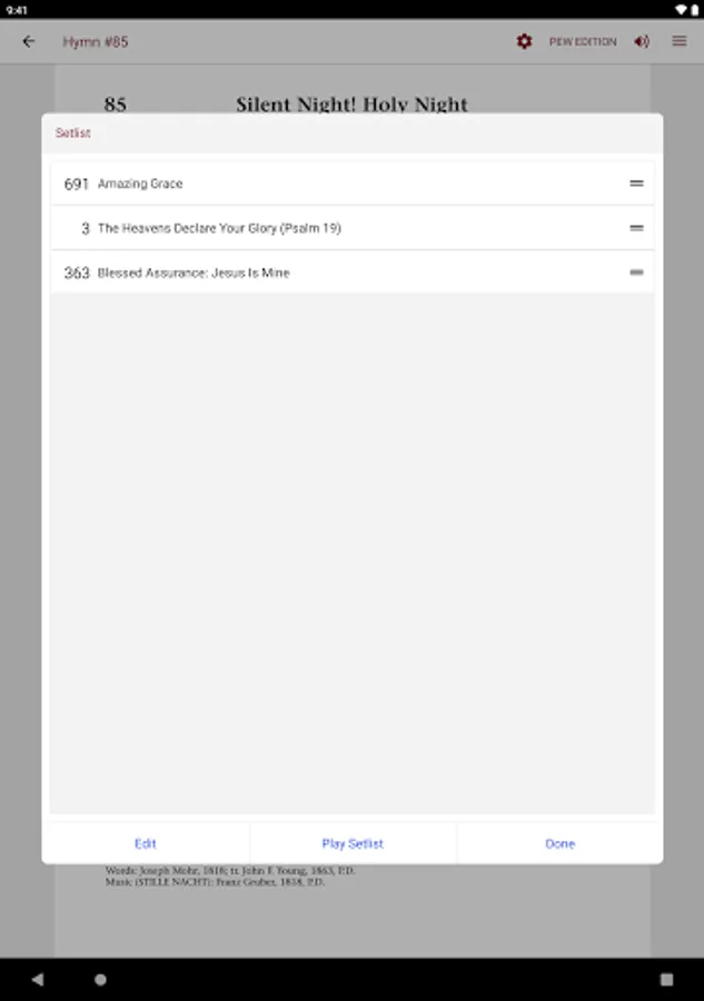 You can also put together a customizable setlist which lets you flip to specific hymns directly according to the service order.