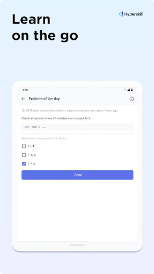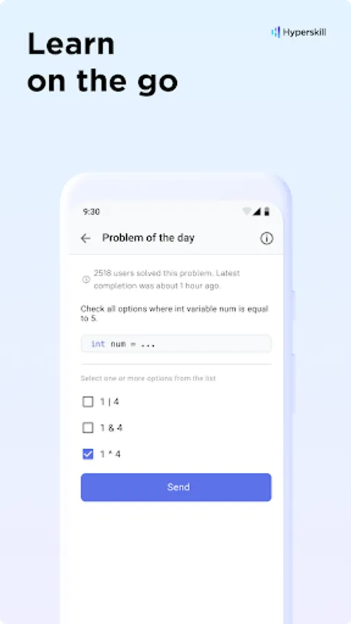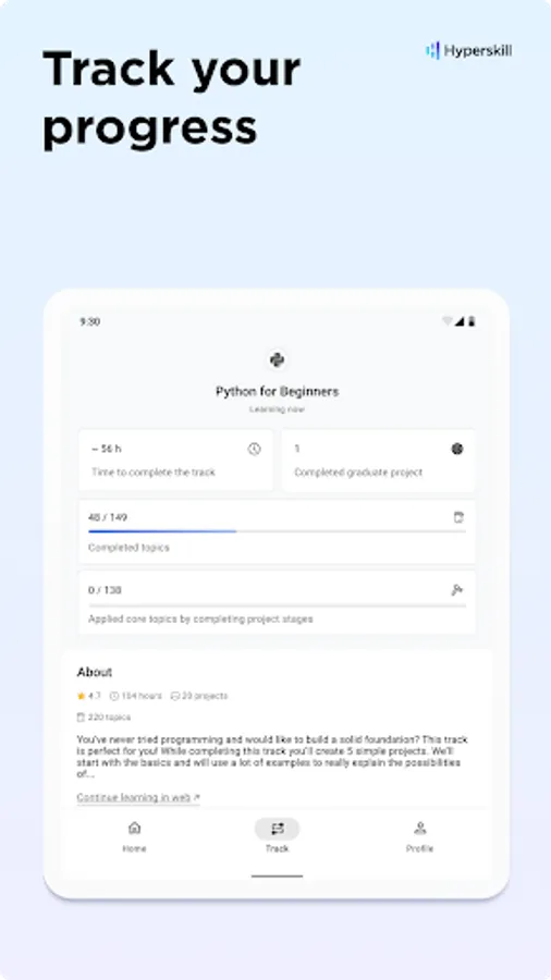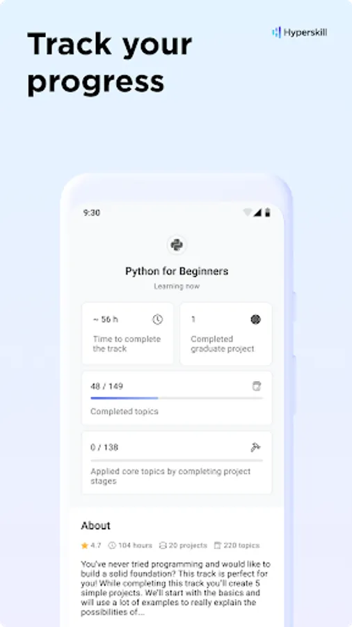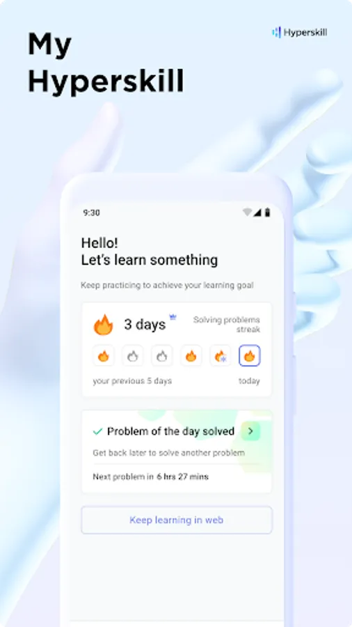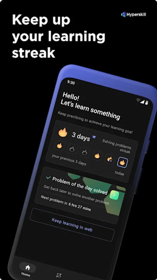 Regular exercise is key to mastering new skills. With adjustable reminders, daily practice tasks, and a learning streak tracker, My Hyperskill app offers a convenient way to study on your mobile phone wherever and whenever you like.