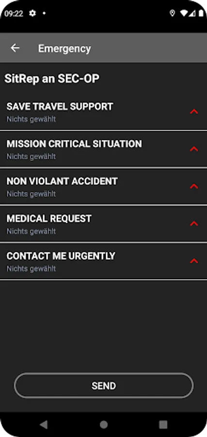 The IAP app is divided into an SOS function, an emergency pre-warning function (emergency function), an ERMS-CHAT system with photo documentation function, a country information system and practical supplementary services to increase security abroad/travel. The functionalities of the app can only be used after connecting to the existing Internet/GSM/GPS networks. The SOS and positioning/tracking system can be individually activated or deactivated by the user.