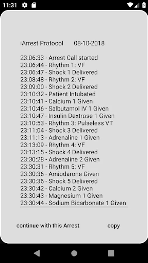 iArrest will record the exact time an important event or an intervention has occurred and present the user with a detailed log of events. These logs can be copied to the clipboard and used for documentation and record keeping.