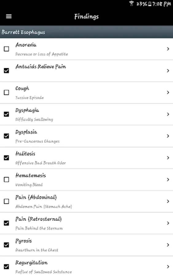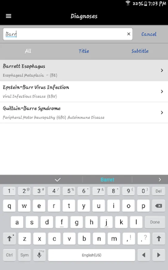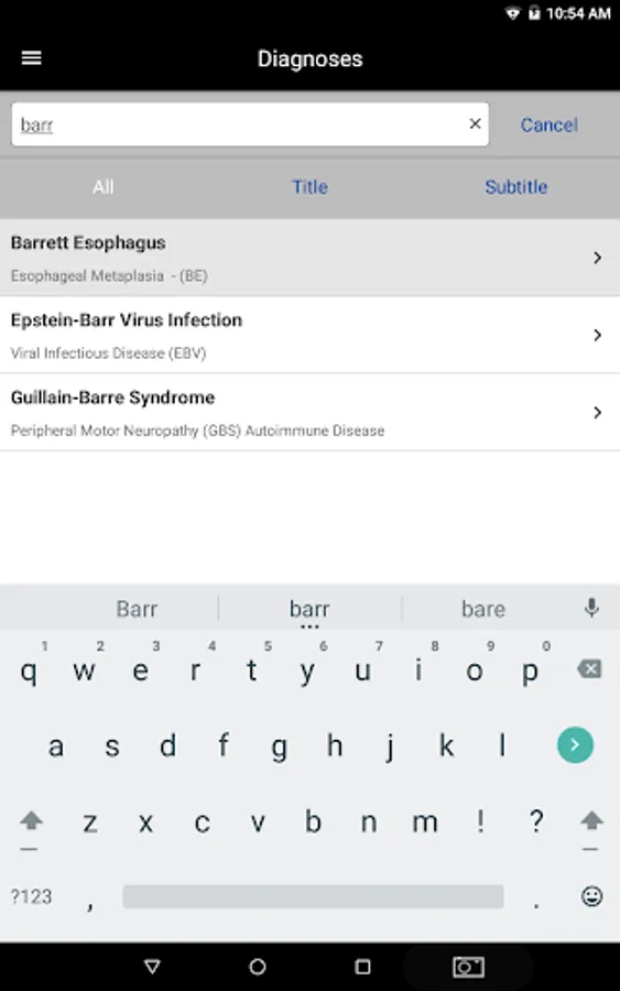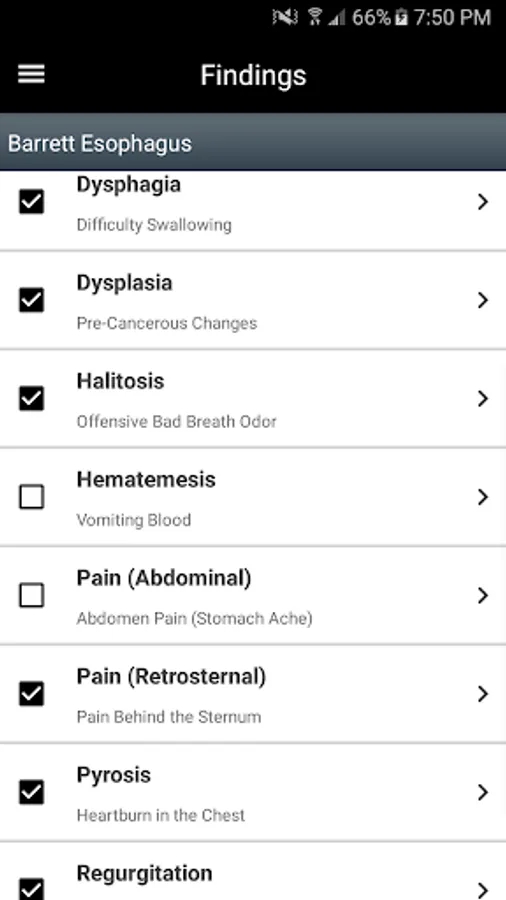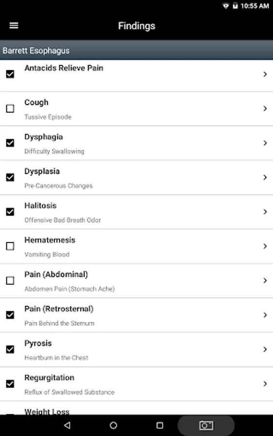 Locate any Symptom, Study, Diagnosis or Treatment from full lists in just moments by using fast search modes that can also be located by entering synonyms or categories even by voice activation.