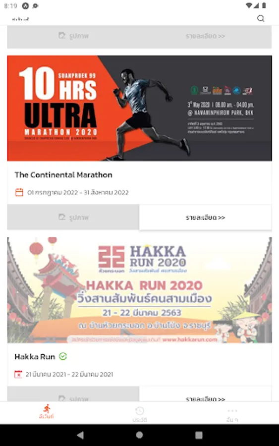 - Displays the history of running events registration.