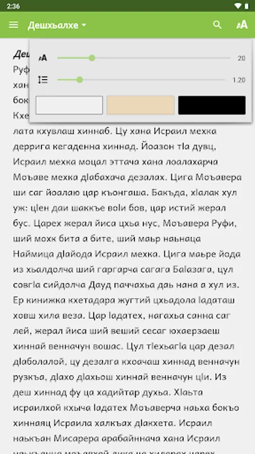 The text size in the app can be adjusted and the app can be switched to Sepia or Dark Mode.