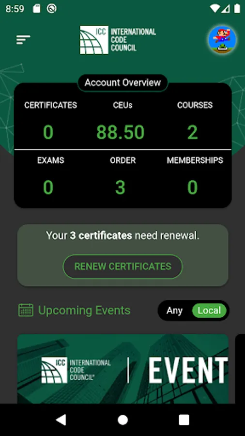 Managing your professional career has never been easier. The myICC app by the International Code Council has been designed to help you manage your time, purchases, professional certifications, education progress, membership and so much more to facilitate the quick and easy management of your career status and progression. Having all your information at your fingertips eliminates the need for you to manually track the status of the many activities you pursue to be the best at your job. The Code Council is yourorganization dedicated to helping you succeed. Get the myICC app today to get started.