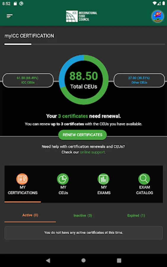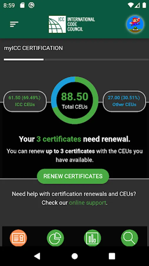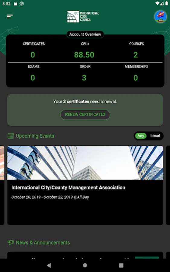 The myICC app is a full featured app that encompasses all the interactions you have with the Code Council so that at any moment you can check on the status of each. The app is designed to put information at your fingertips rather than searching in many different places. The myICC app allows you to: