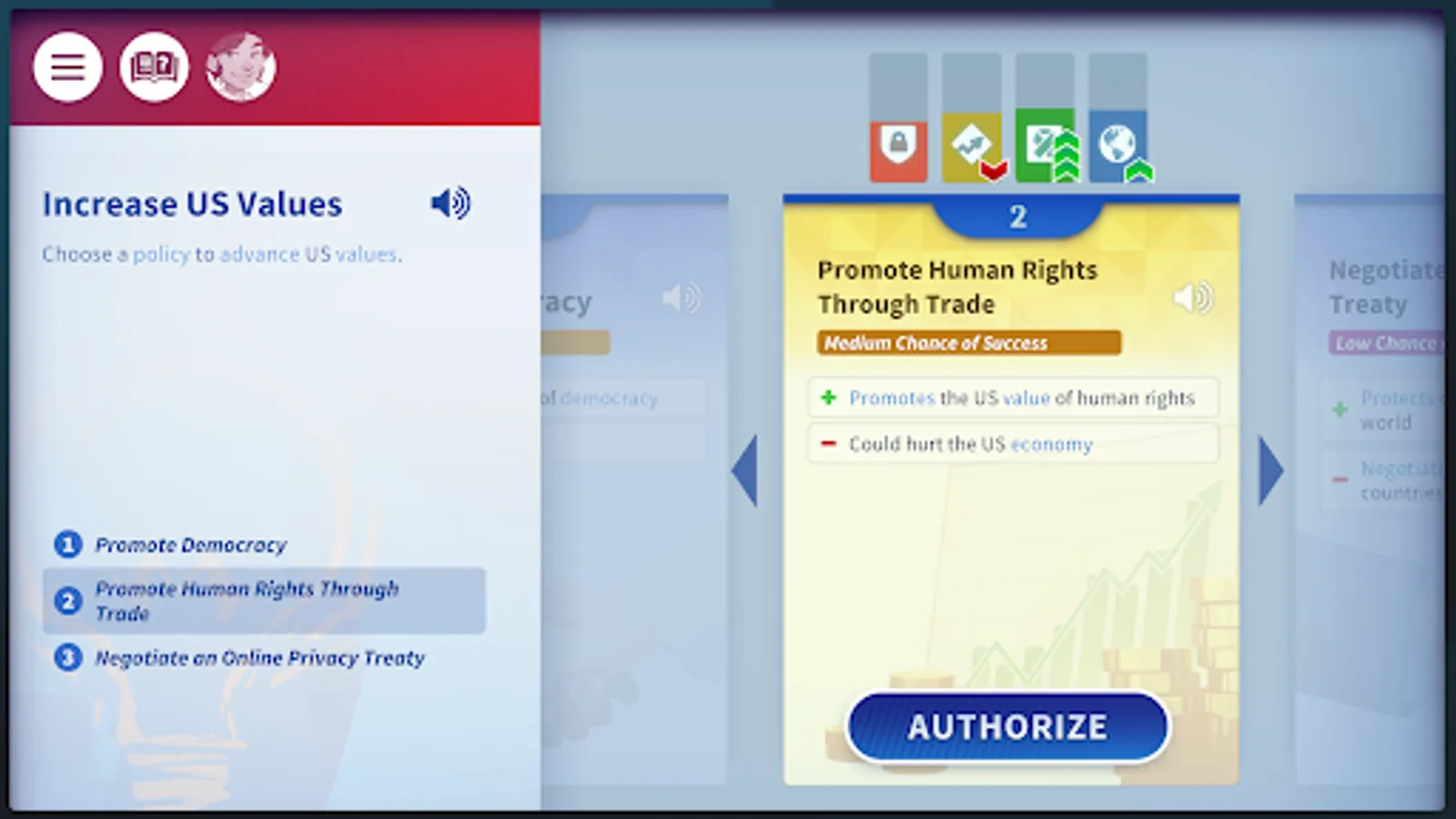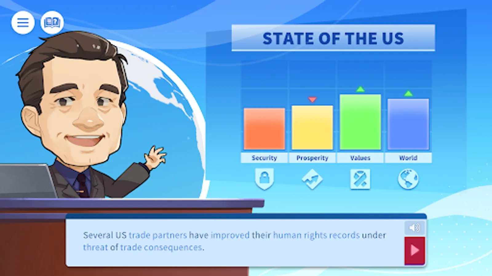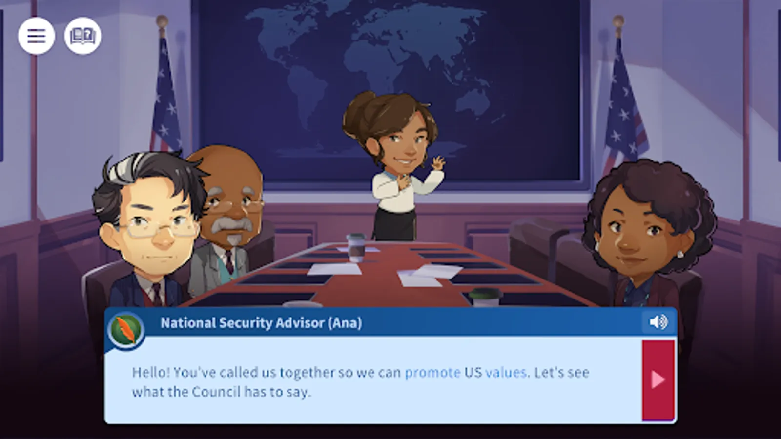 Step inside the Situation Room, where international events are discussed and decisions are made. In Convene the Council, you take on the role of President of the United States and respond to world events while surrounded by your National Security Council.